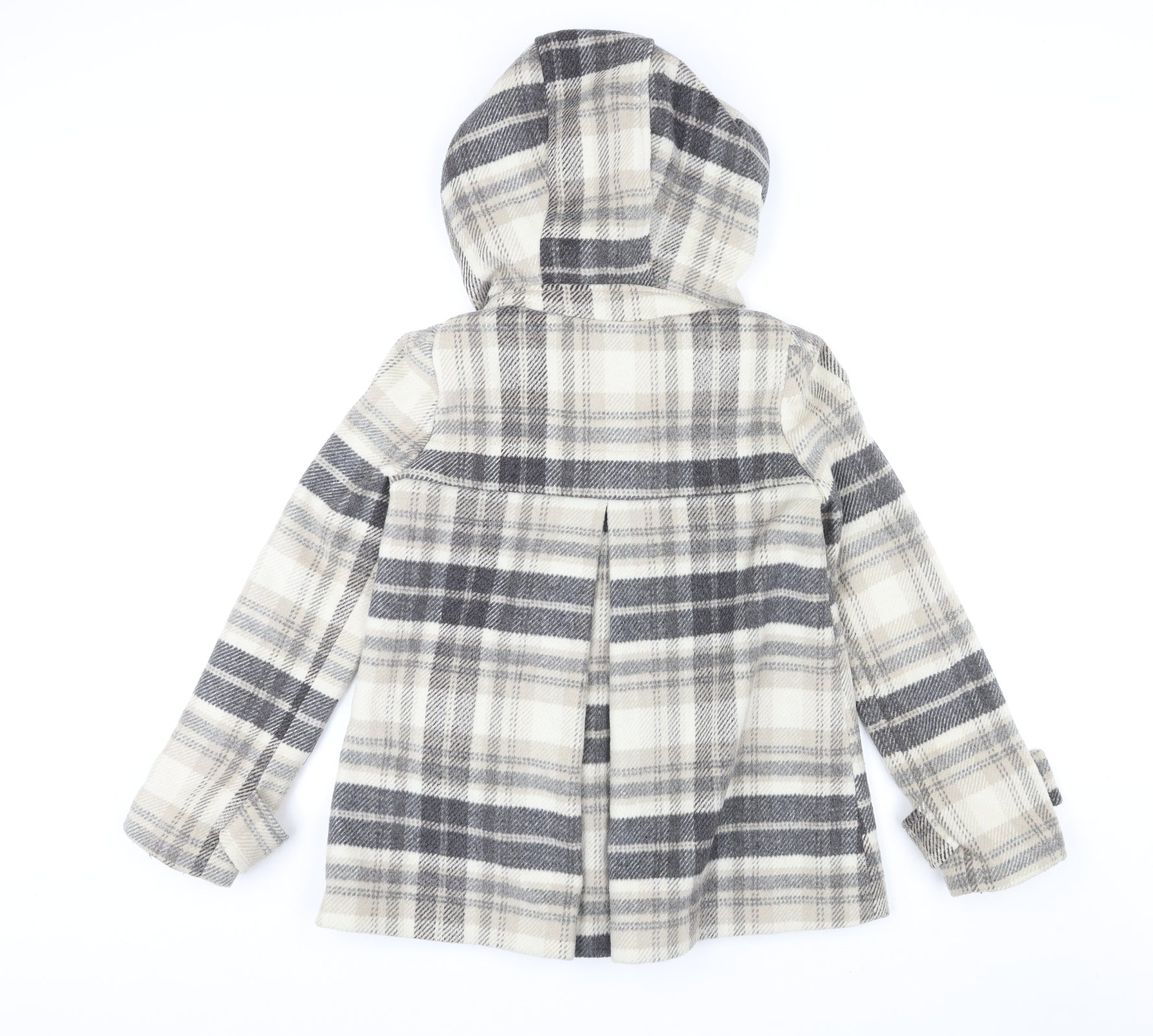 Womens Beige Geometric Pea Coat Coat Size XS Button