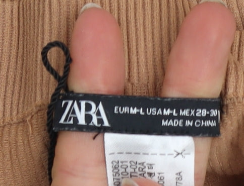 ZARA Womens Beige Ribbed Biker Style Activewear Shorts Size L Polyamide Blend