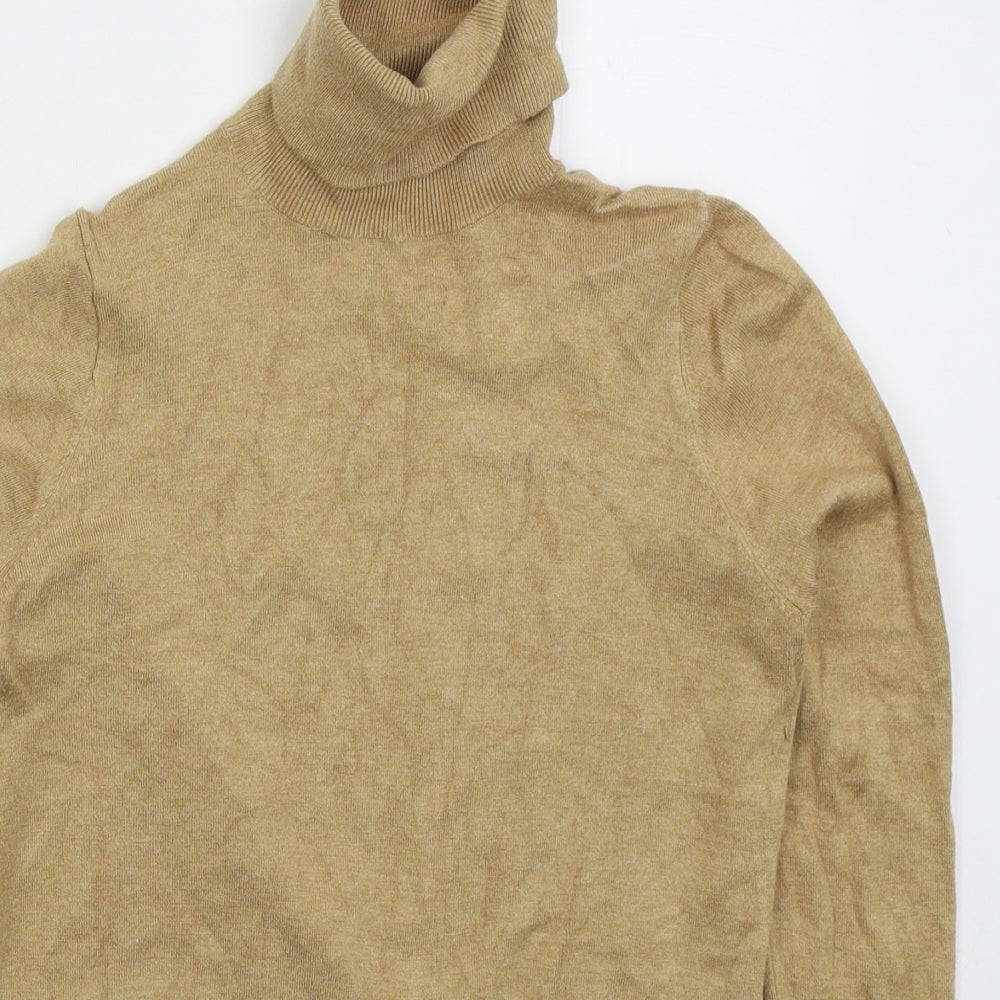 Womens Beige Roll Neck Viscose Pullover Jumper Size M