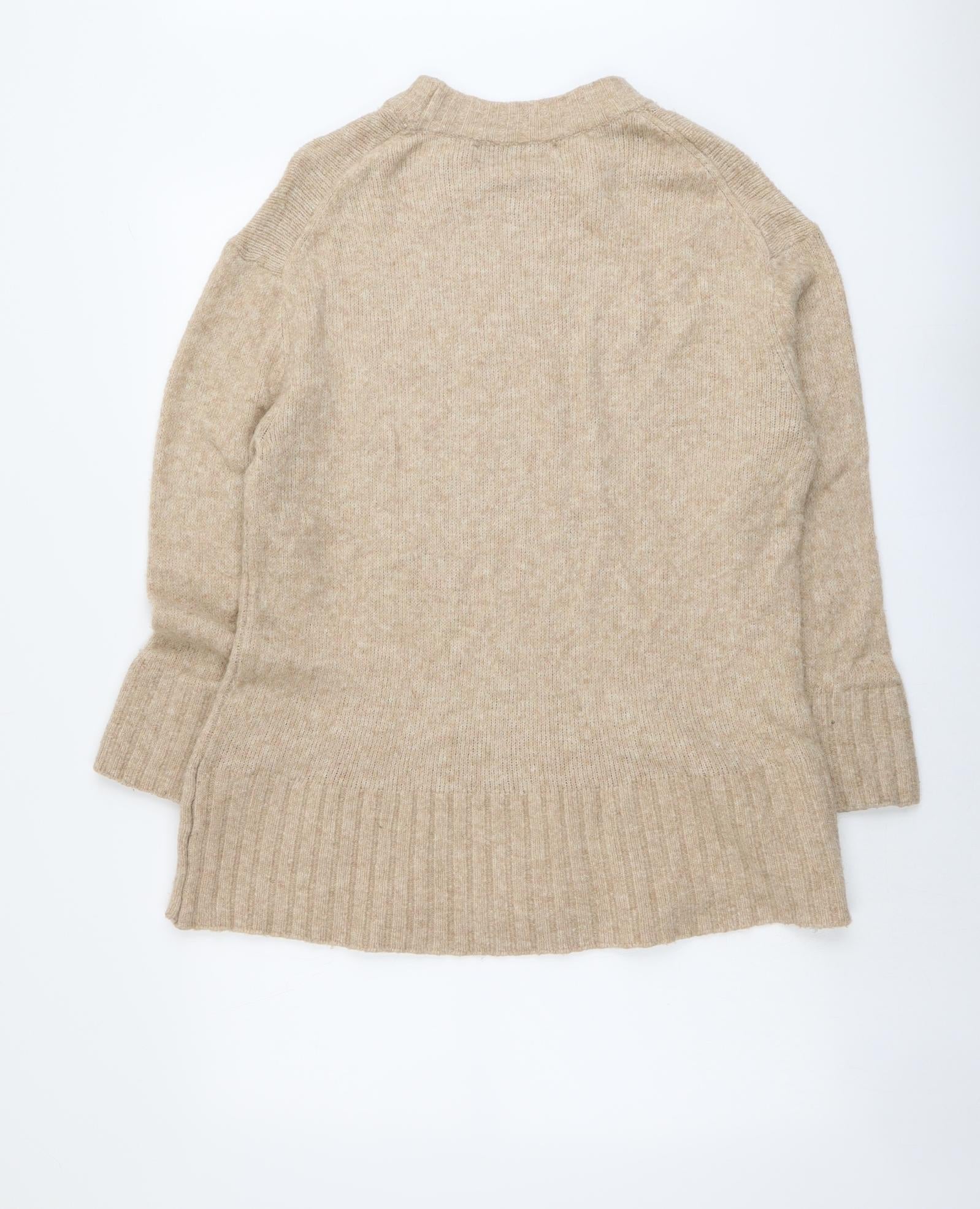 Womens Beige Round Neck Acrylic Pullover Jumper Size M