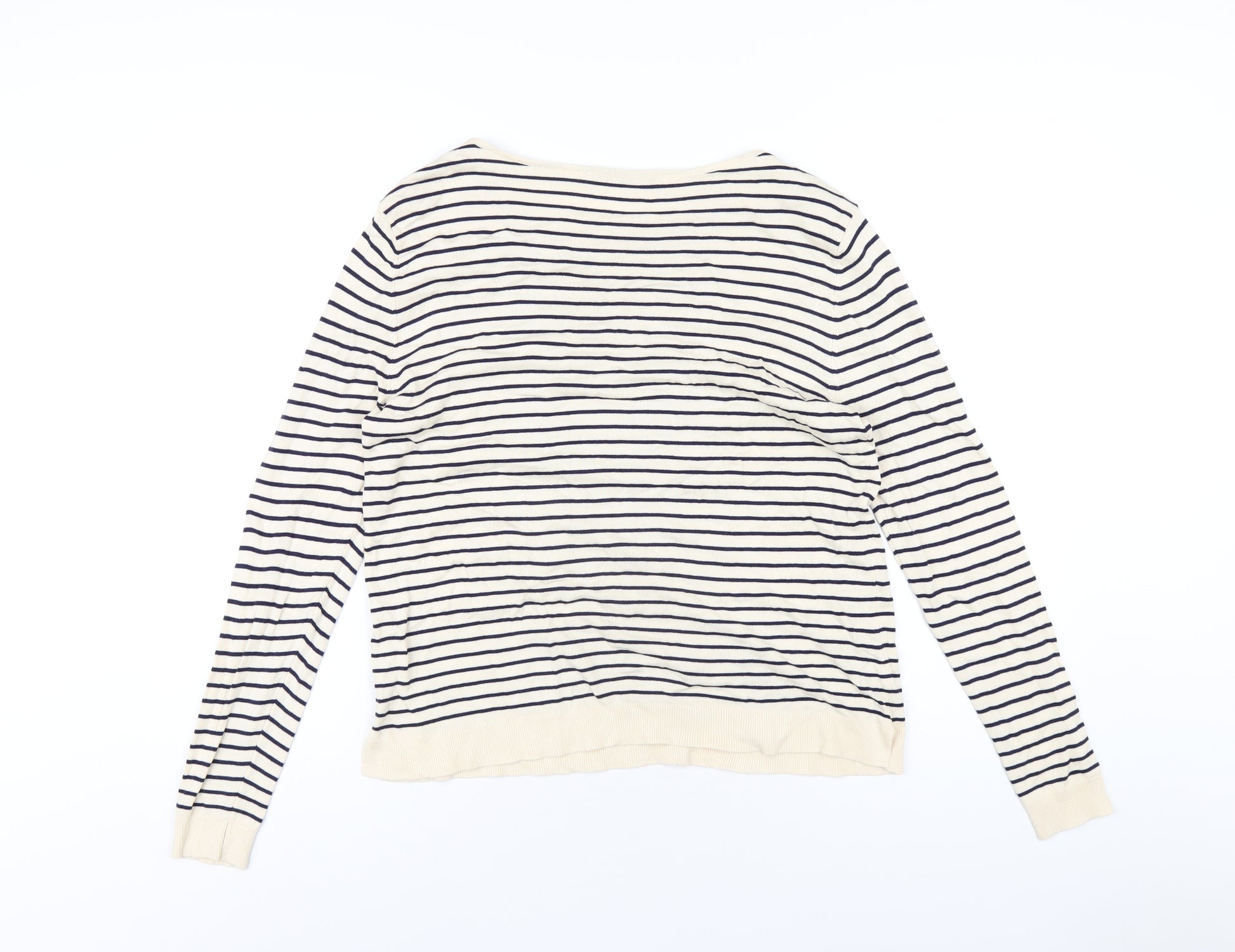 Womens Beige Round Neck Striped Viscose Pullover Jumper Size S