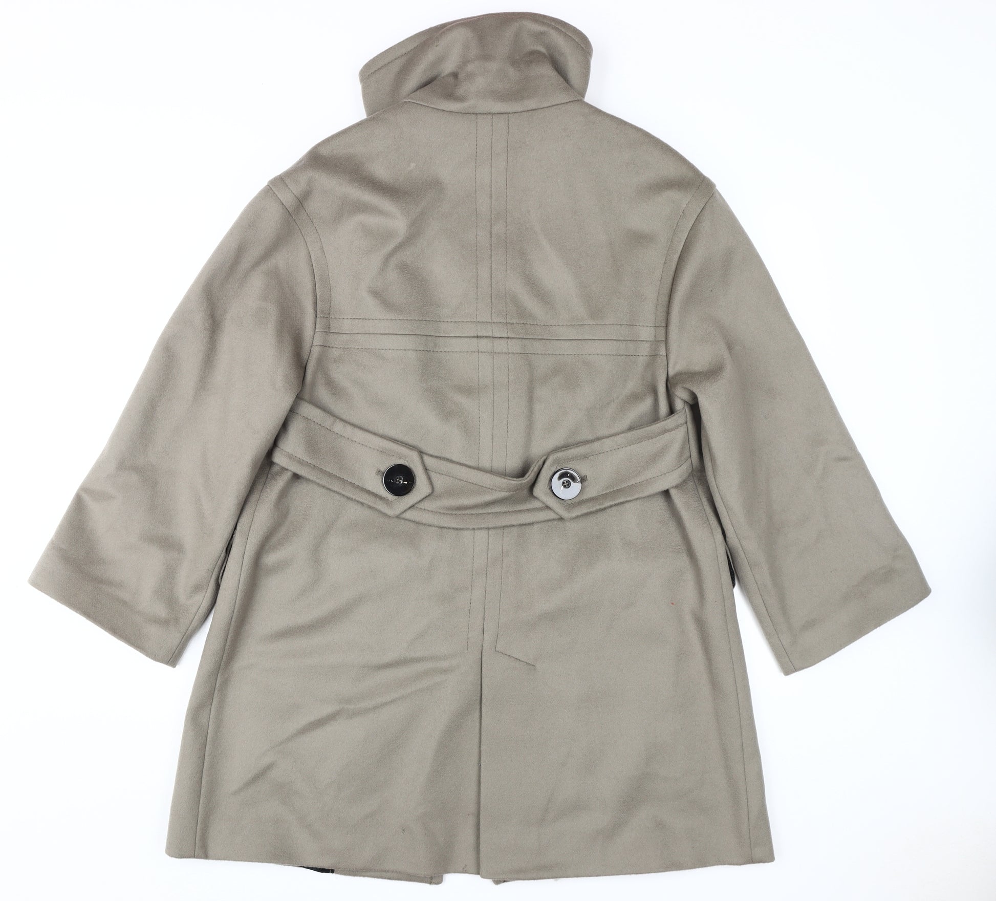 Women's Beige Wool Overcoat, Size 8, Classic Style