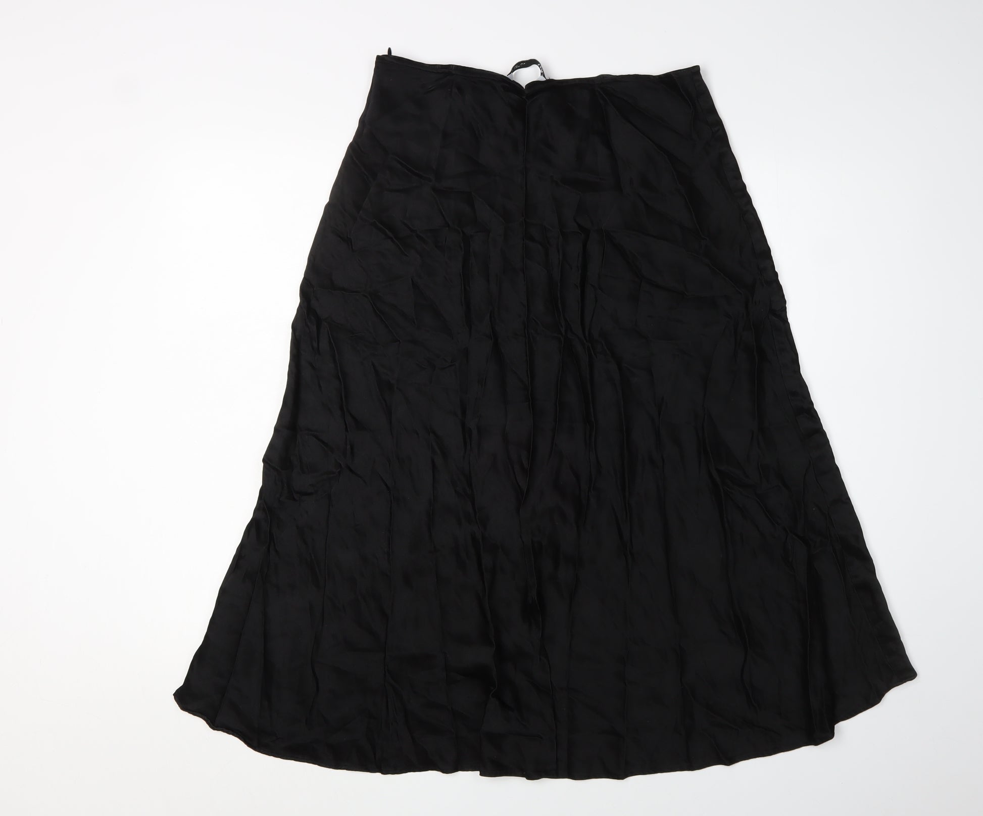 Elevate your wardrobe with this chic black A-line skirt from Zara, perfectly tailored for the modern woman. Crafted from soft viscose, this skirt offers a smooth, elegant drape, ensuring you look stylish and feel comfortable throughout the day. Its sleek black hue makes it a versatile piece, effortlessly pairing with various tops to suit both casual outings and more formal events. The A-line design adds a flattering silhouette that enhances your shape without sacrificing comfort. It features a convenient zip closure for easy wear. Although it's in excellent condition, the fabric shows slight wrinkling but has no visible tags, ensuring a high-quality item for a fraction of its original price. This stylish skirt is an essential addition to any fashion-forward woman’s collection, allowing for unmatched versatility and timeless style. Don't miss out on this must-have piece that offers both functionality and fashion in one beautiful package.