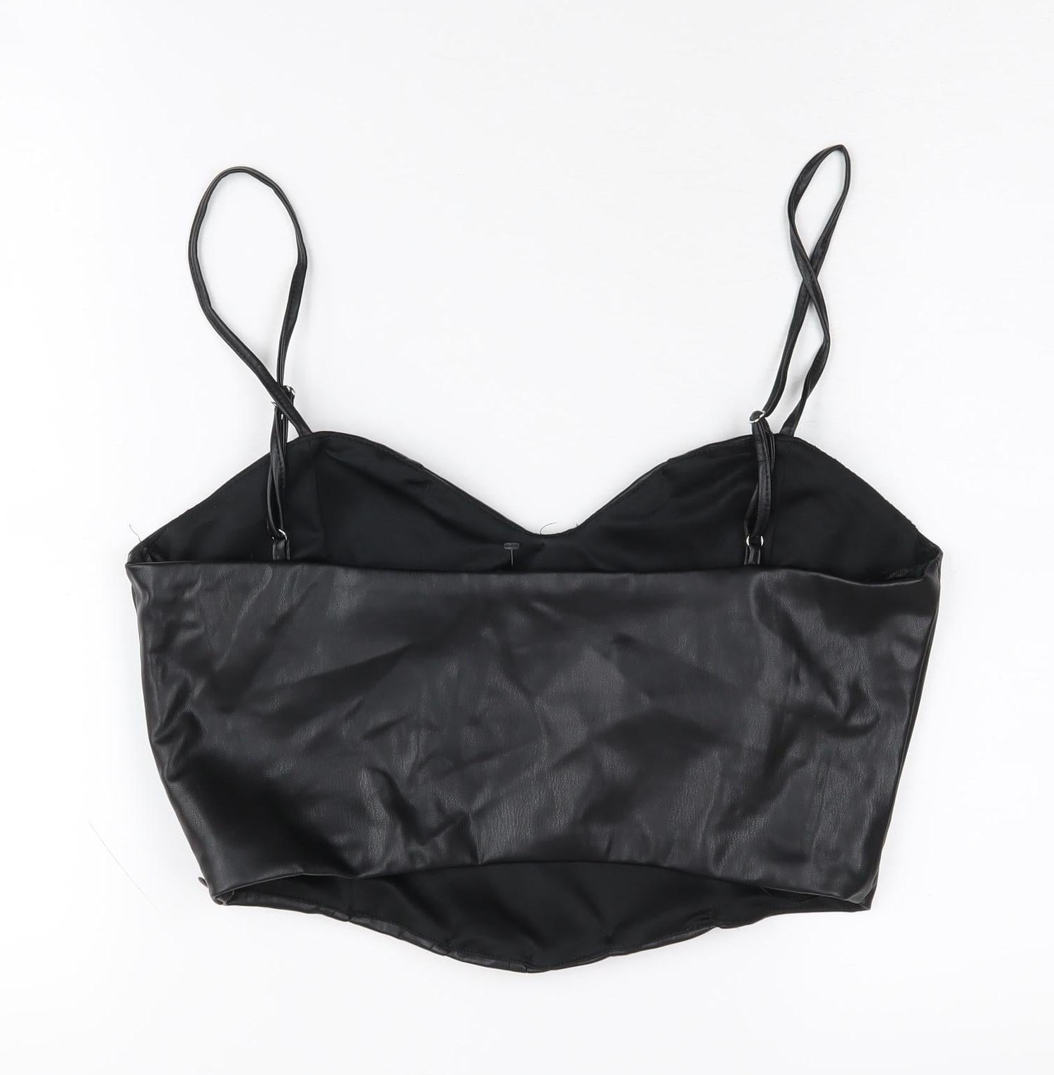Explore the sleek and fashionable look with this Zara black camisole top, designed for women who love a stylish and chic appearance. Made from 100% polyester, this sleeveless top offers a smooth and comfortable fit. The solid black colour brings a versatile option to your wardrobe, suitable for various occasions and outfits. Its regular fit and spaghetti straps add a modern touch to your ensemble, making it ideal for layering or wearing solo. Perfect for casual outings or a night out with friends, this piece provides elegance and style. Pair it with jeans or a skirt for a sophisticated and stylish look. Elevate your wardrobe today with this classic Zara top.