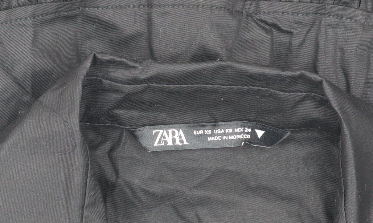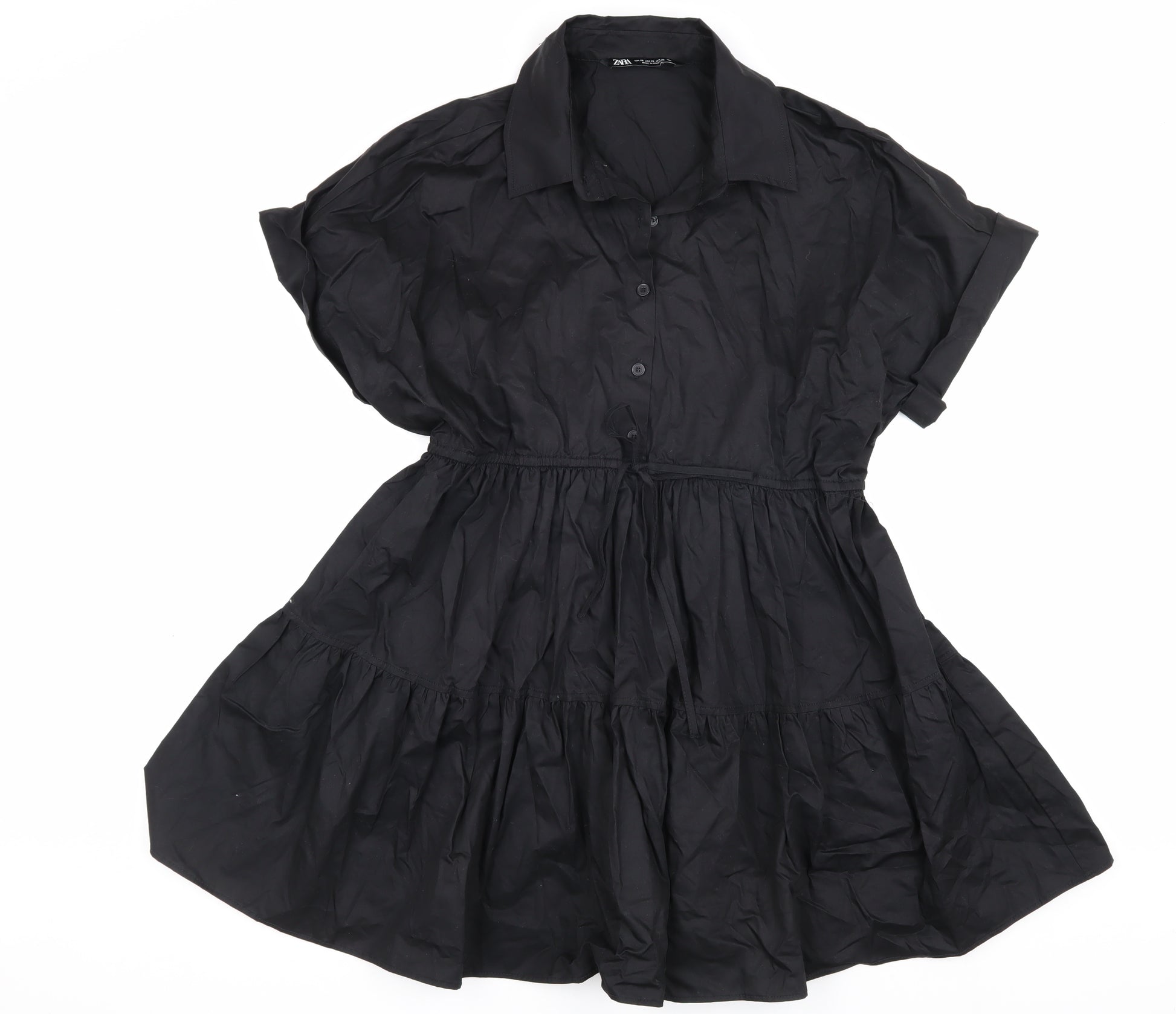 This Zara women's dress in size XS offers a blend of style and comfort, perfect for various occasions. Crafted entirely from 100% cotton, it provides a breathable and comfortable fit ideal for everyday wear. The dress features a classic black colour, accentuated by a collared neckline and short sleeves, delivering a timeless yet versatile look. Its button-up closure enhances ease of wear and adds a touch of sophistication. Although the fabric is slightly wrinkled, it remains in excellent condition, ready to become a staple in your wardrobe. This dress, with its simple yet elegant design, is suitable for countless outfit combinations, making it a practical choice for a variety of settings. Elevate your style effortlessly with this chic black dress from Zara, perfect for women who value both fashion and comfort.