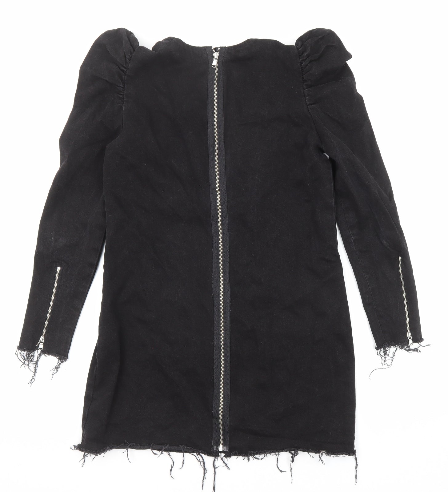 Zara Womens Black Polyester Slip Dress Size M Square Neck Zip