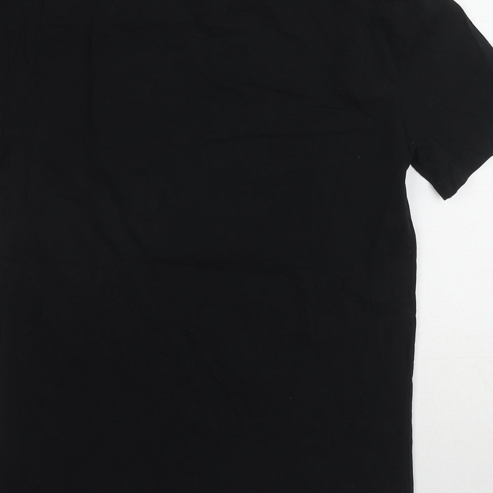 Womens Black Cotton Basic T-Shirt Size S Round Neck