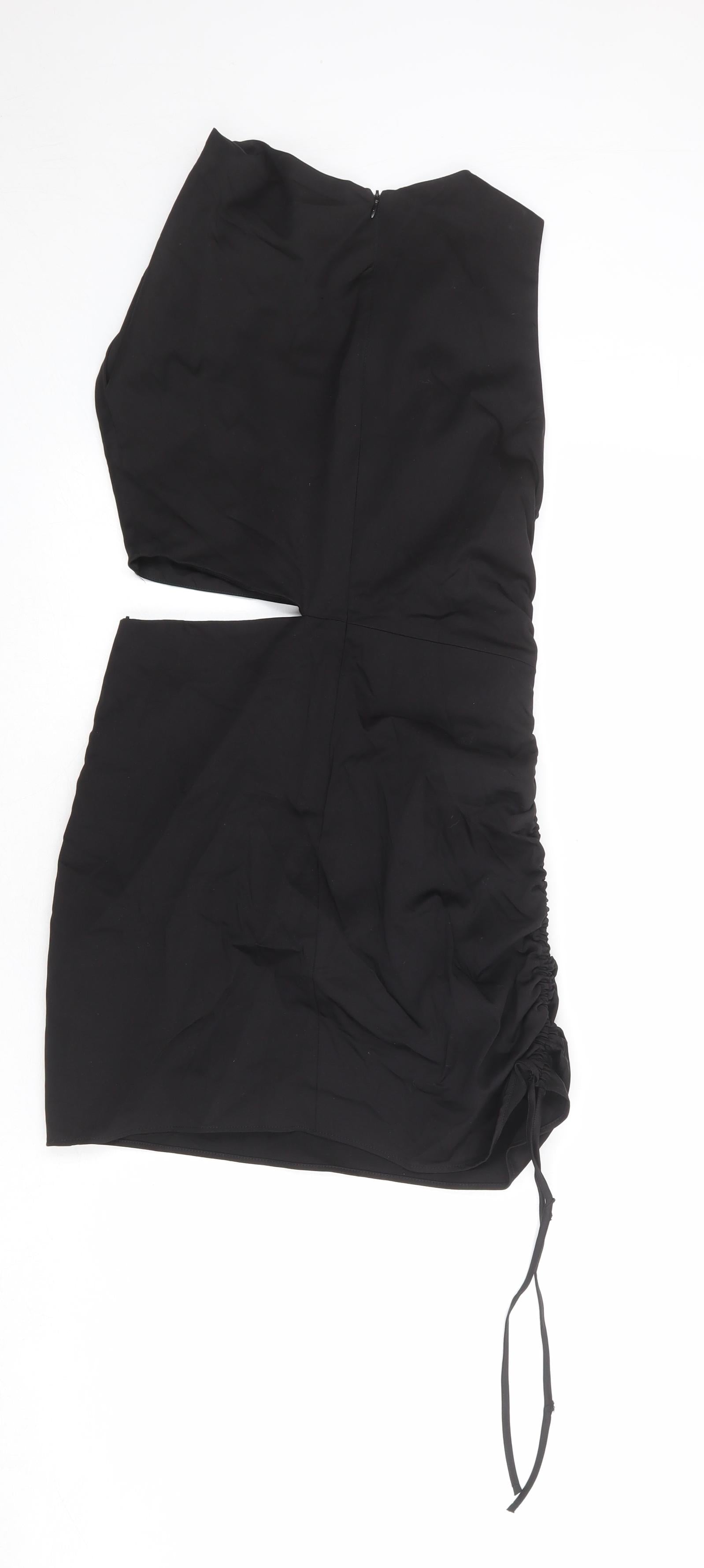 Zara Womens Black Polyester Slip Dress Size M Square Neck Zip