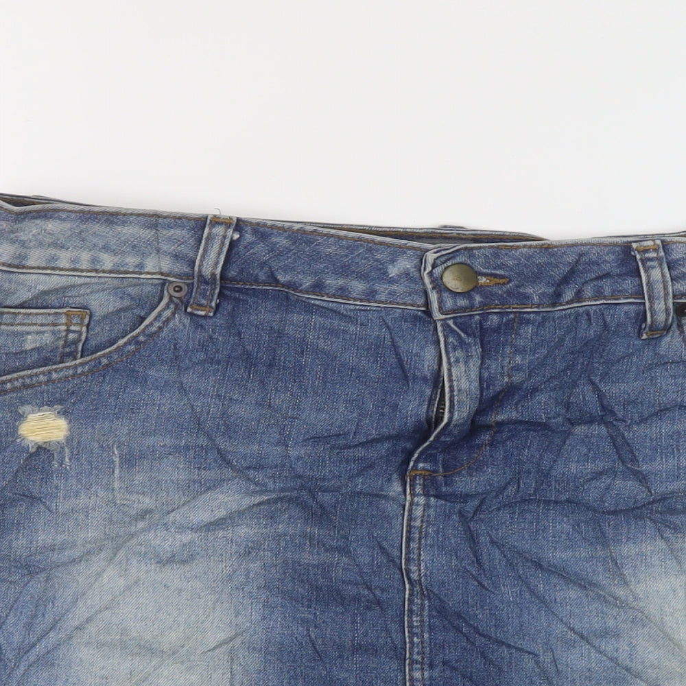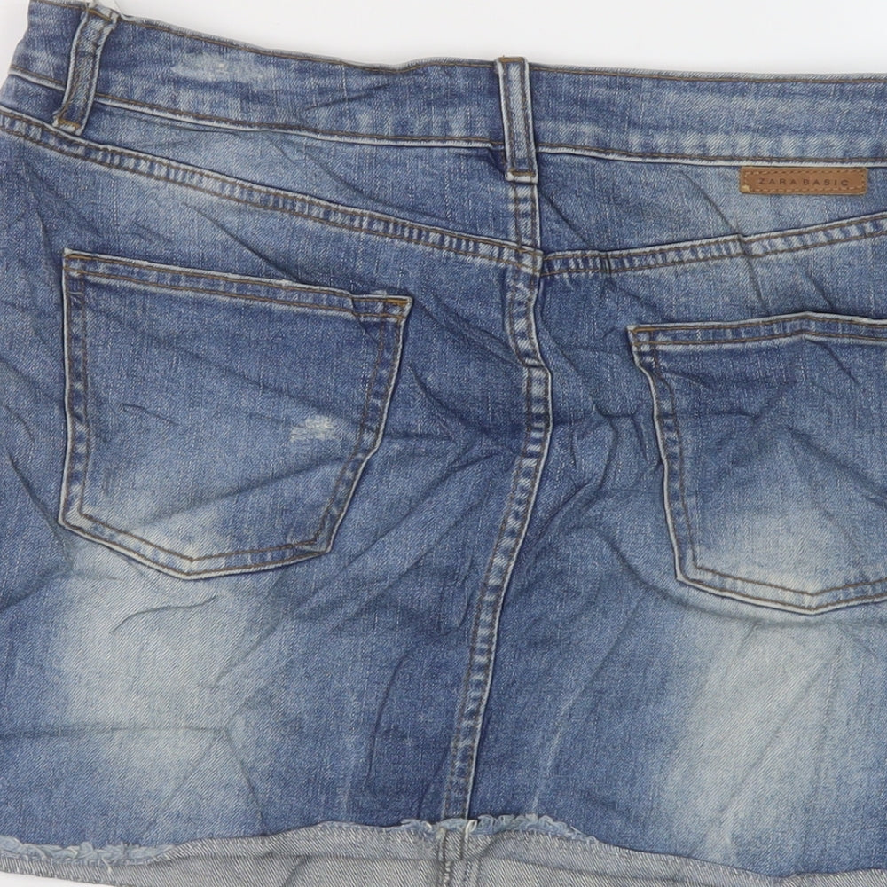 Zara Women Blue A-Line Midi Skirt XL Polyester Satin Zip