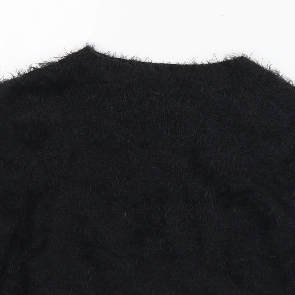 Womens Black Crew Neck Acrylic Pullover Jumper Size 8