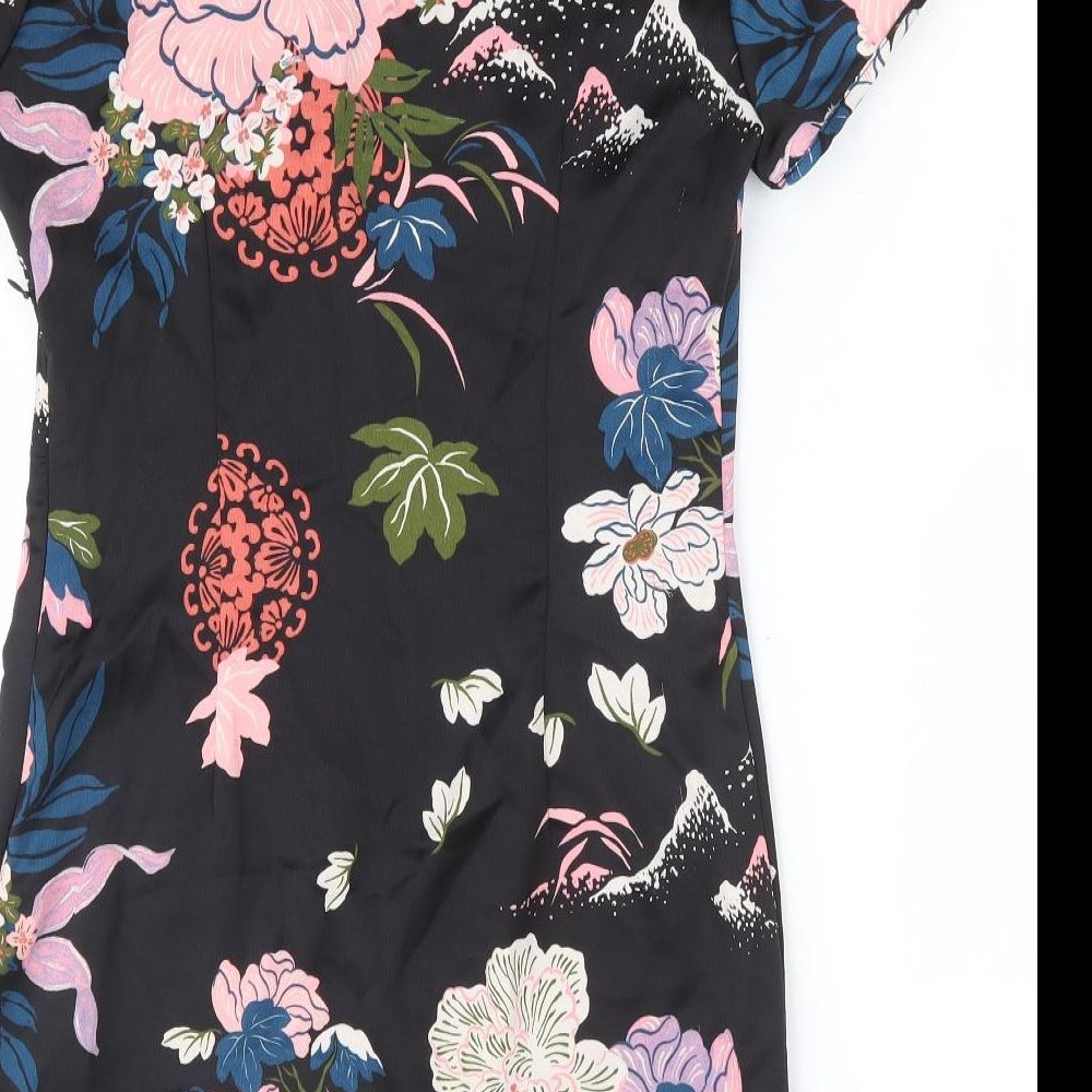 Womens Black Floral Polyester Bodycon Size S Crew Neck Zip