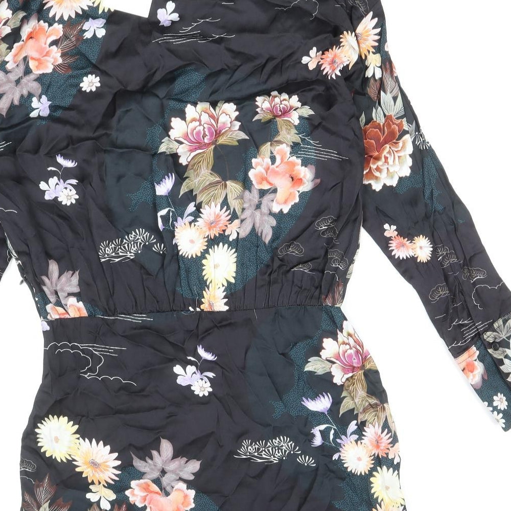 Womens Black Floral Viscose Mini Size S Mock Neck Zip
