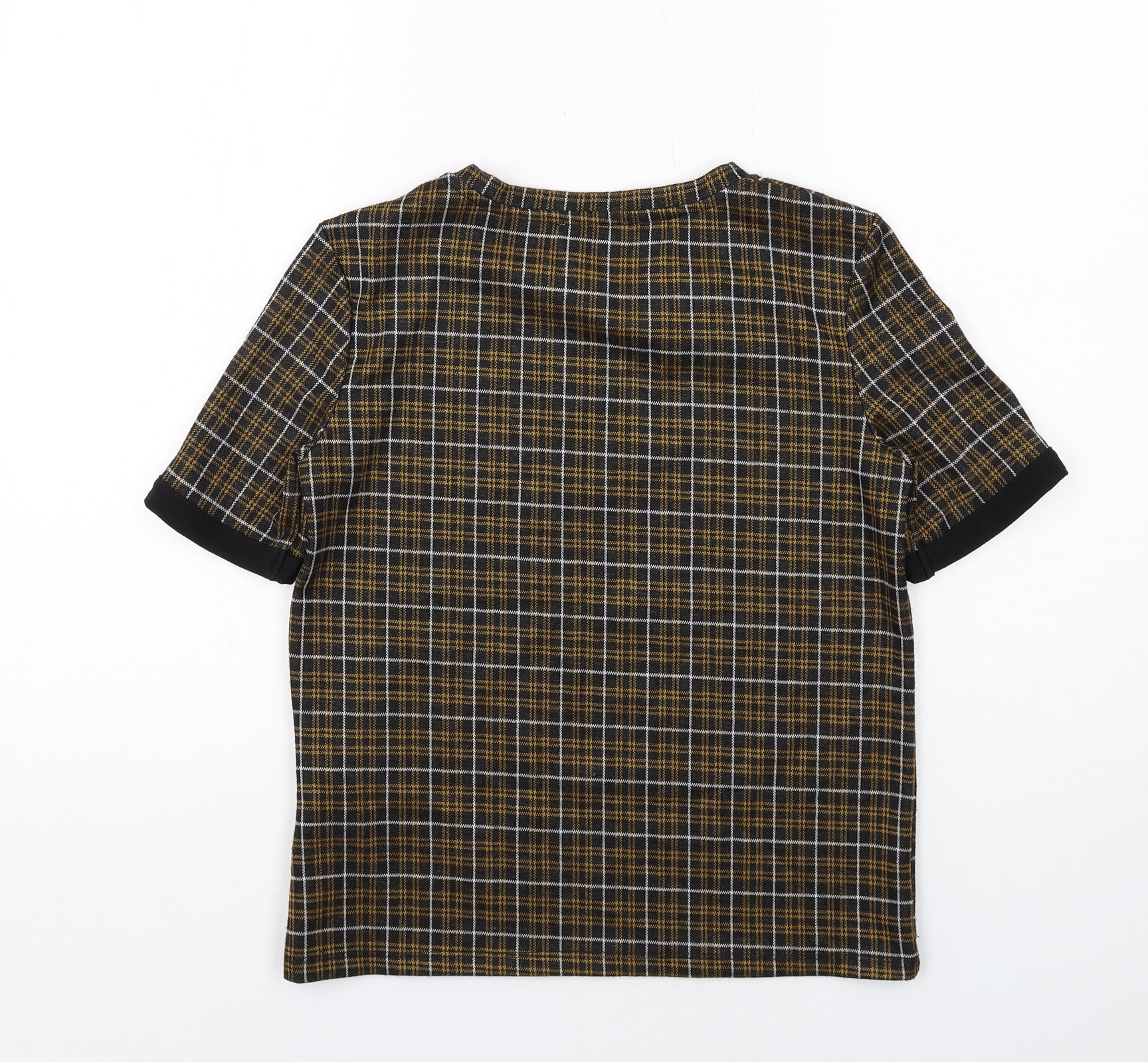 Womens Black Plaid Polyester Basic Blouse Size S Boat Neck