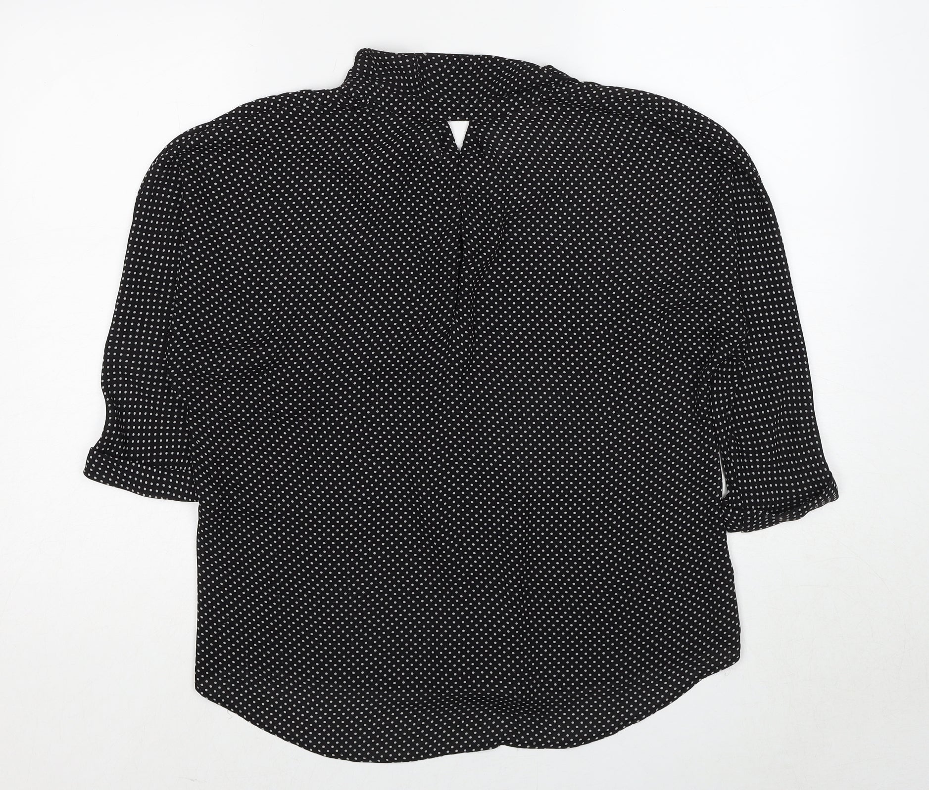Womens Black Polka Dot Polyester Basic Blouse Size XS Collared