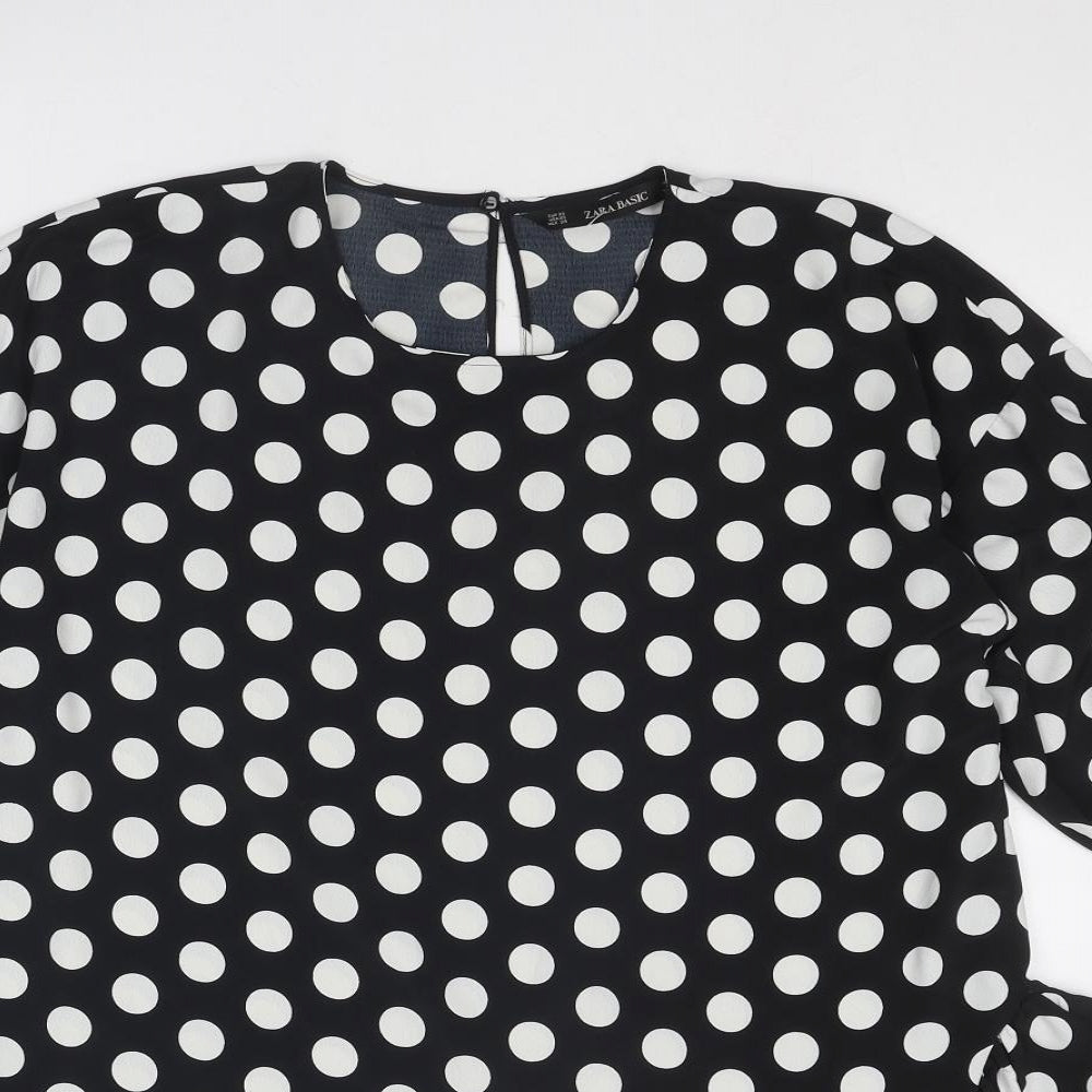 Womens Black Polka Dot Polyester Basic Blouse Size XS Round Neck