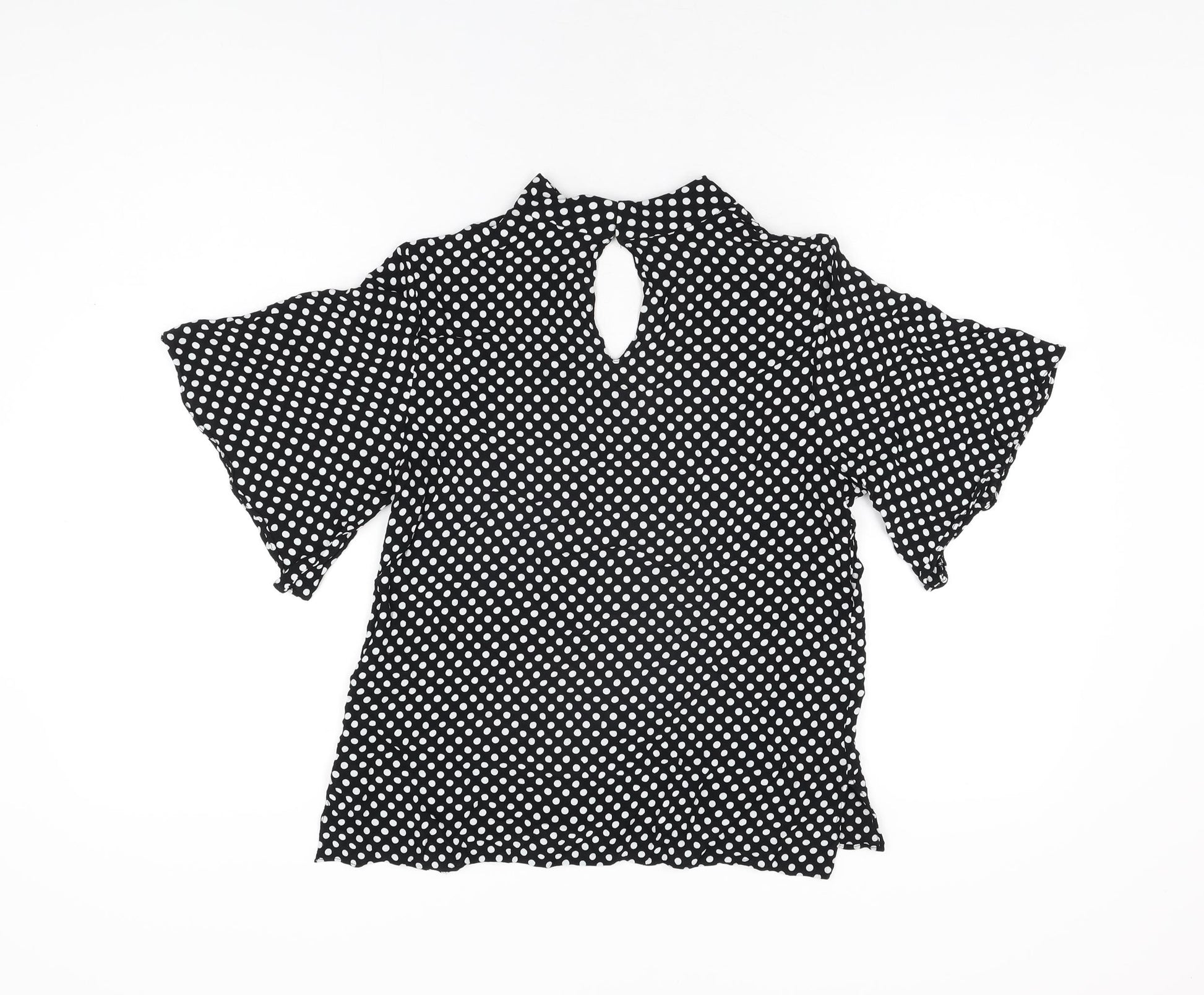 Womens Black Polka Dot Viscose Basic Blouse Size M V-Neck
