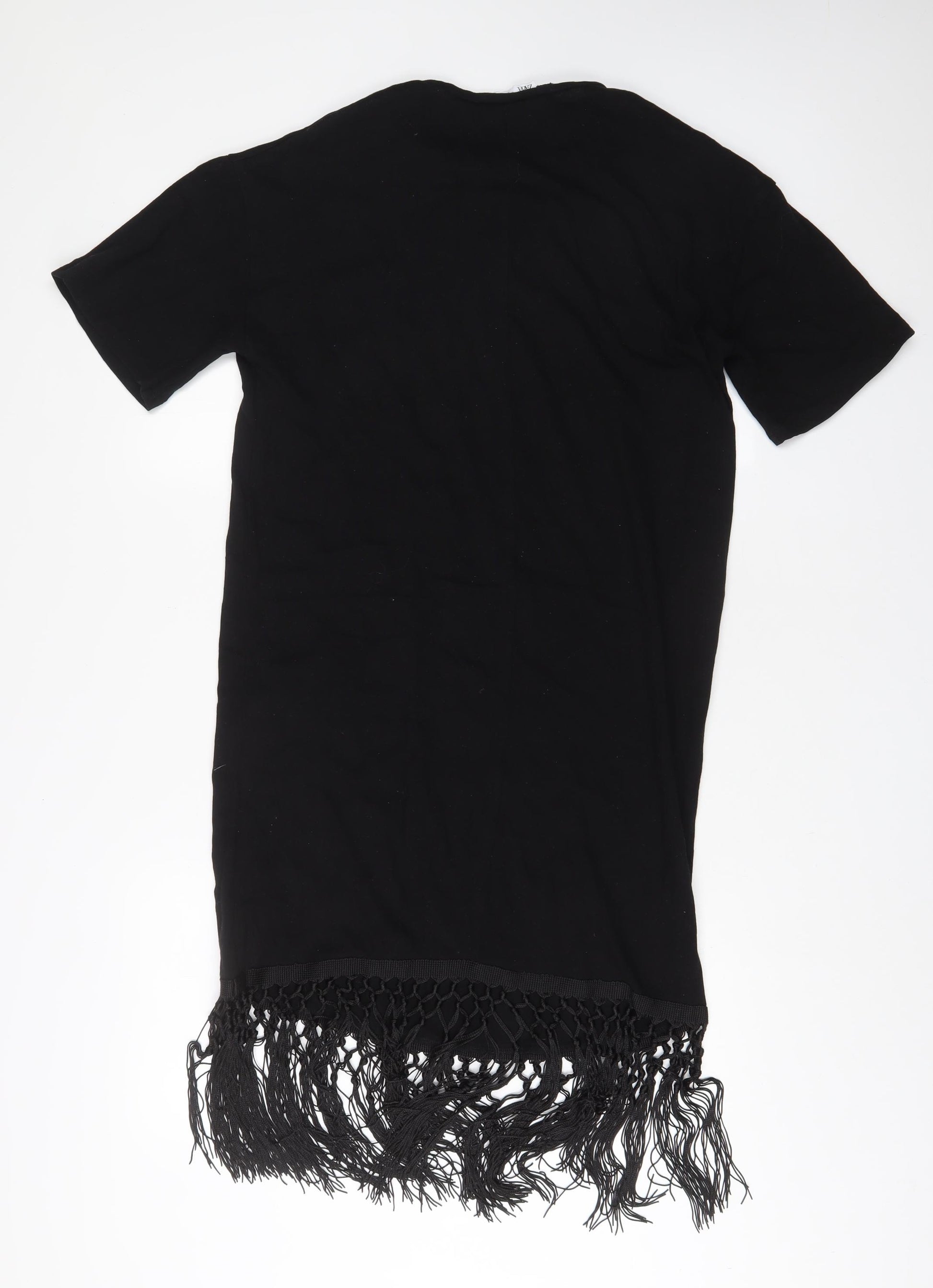 Womens Black Polyester A-Line Size M Crew Neck Pullover - Tassled