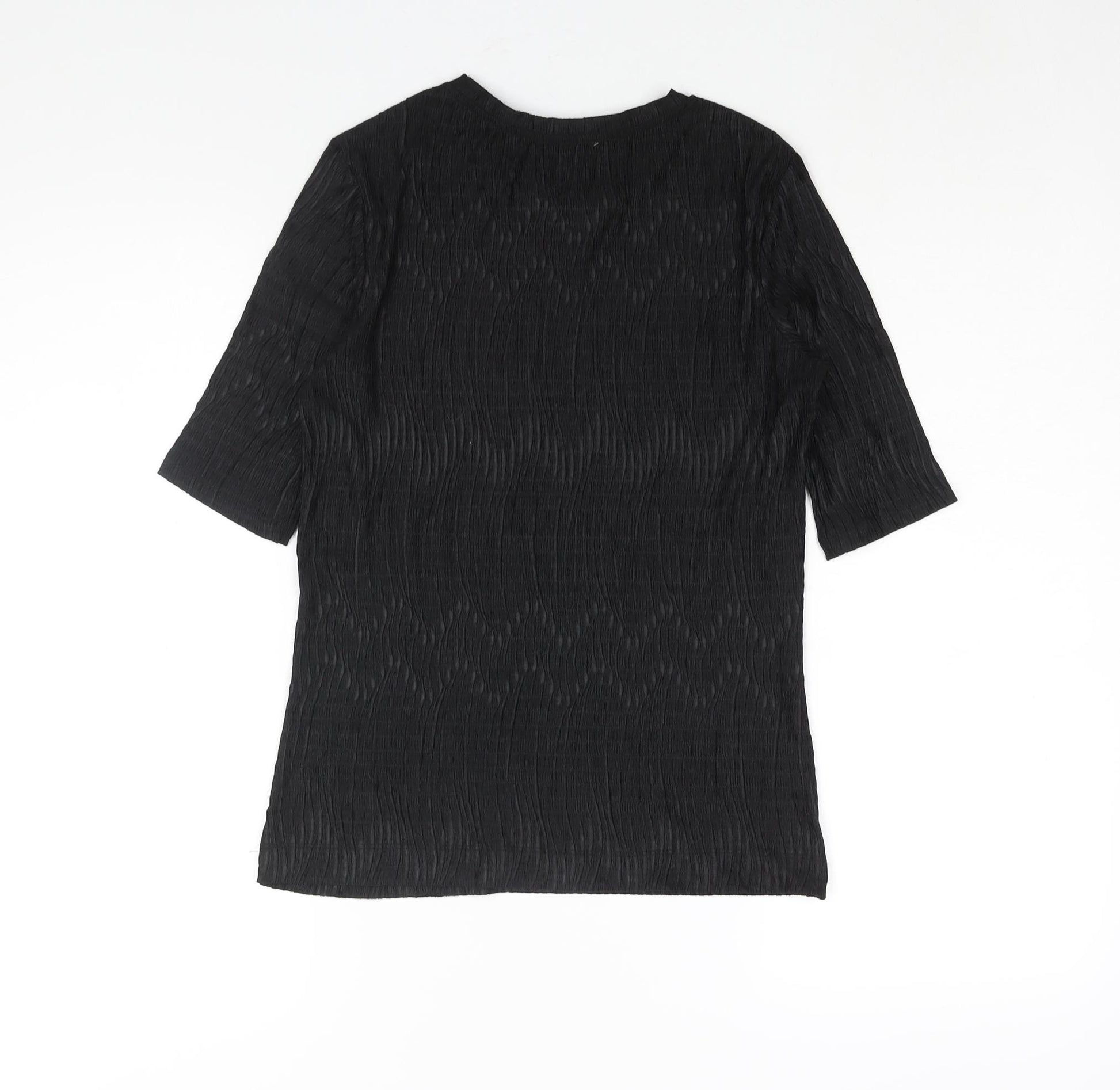 Womens Black Polyester Basic Blouse Size M Round Neck - Textured