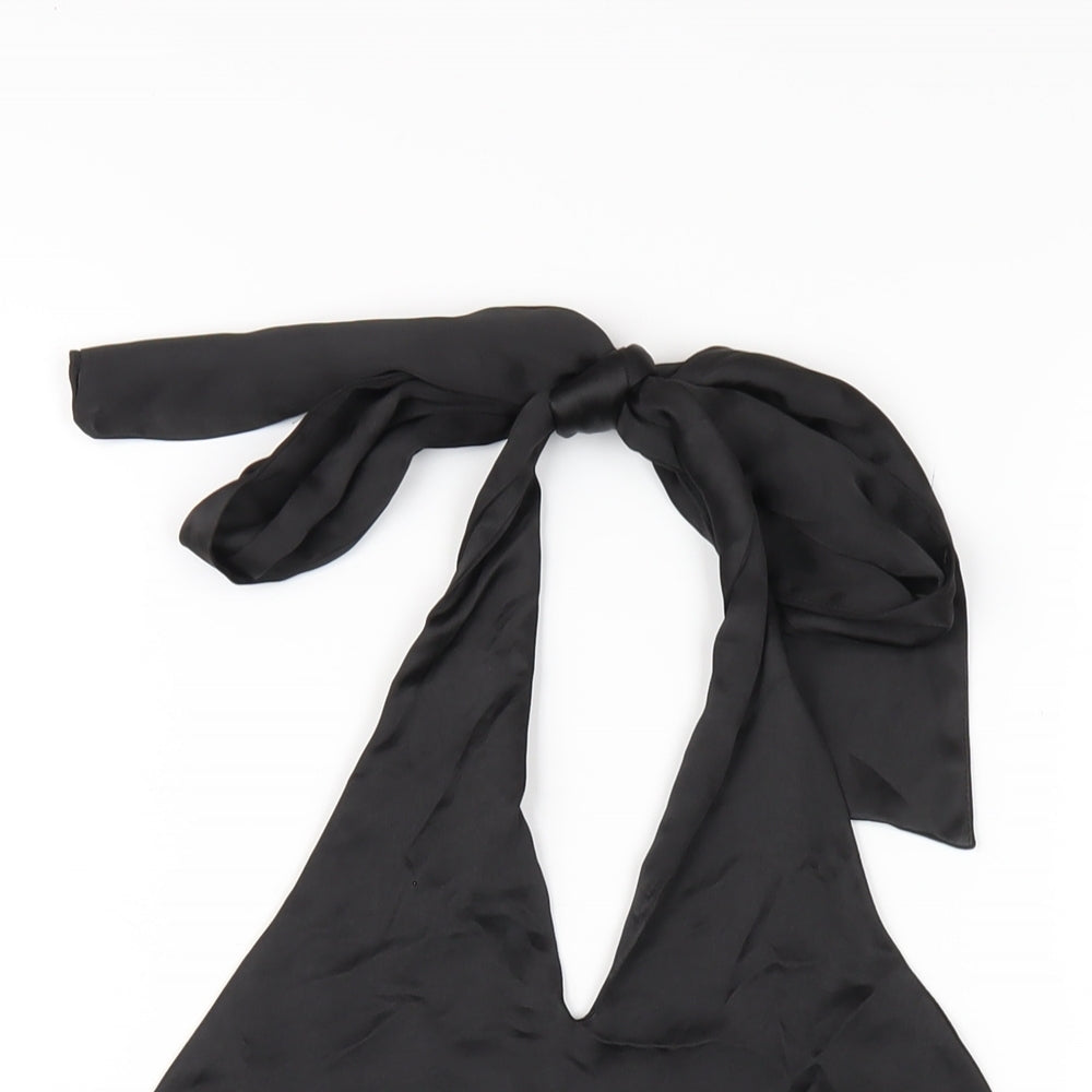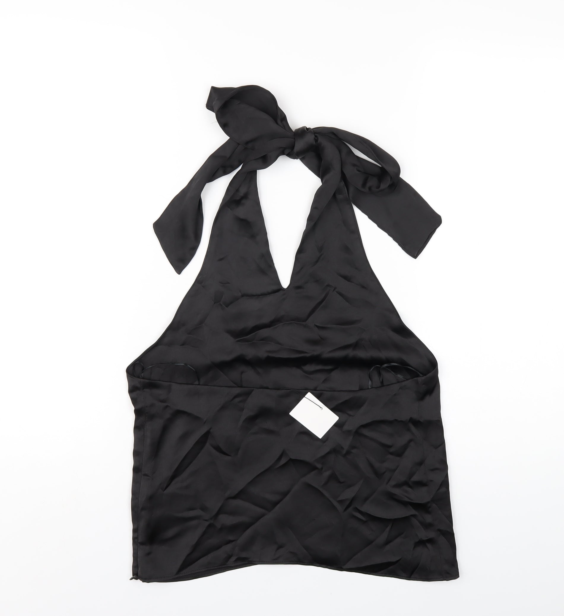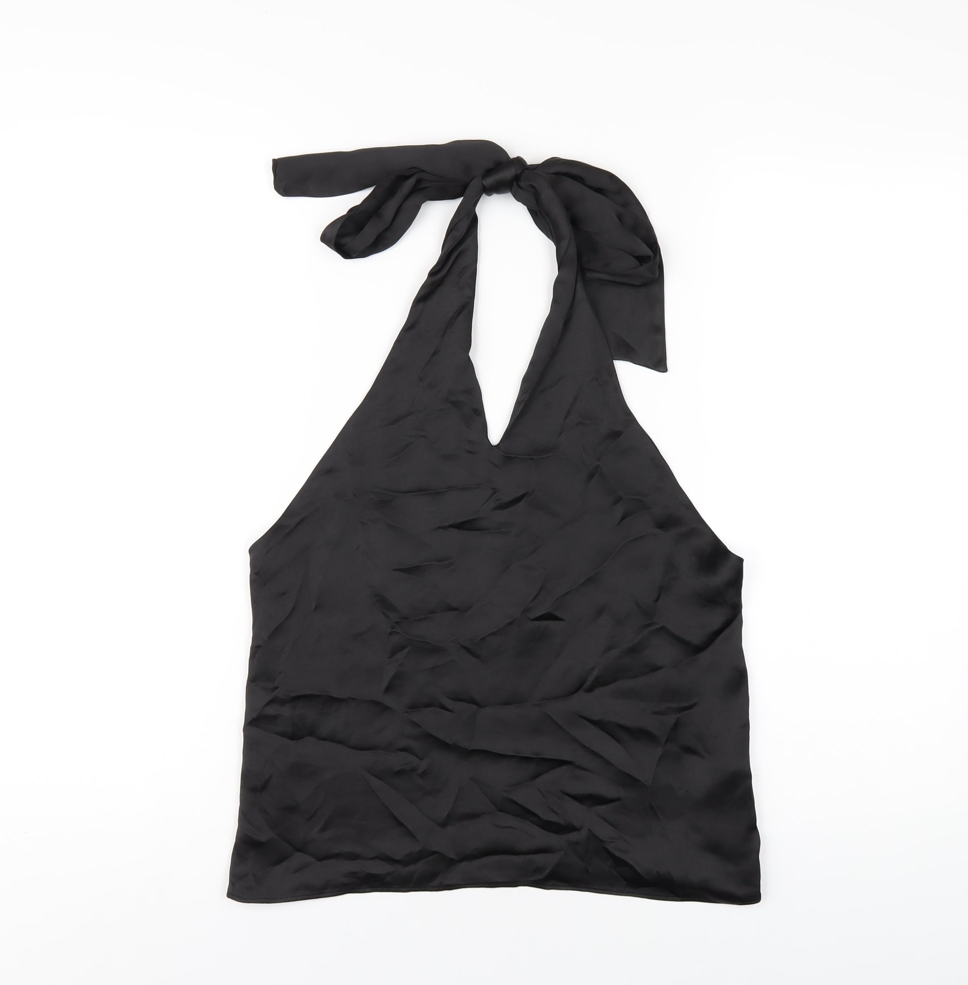 Womens Black Polyester Basic T-Shirt Size M Halter
