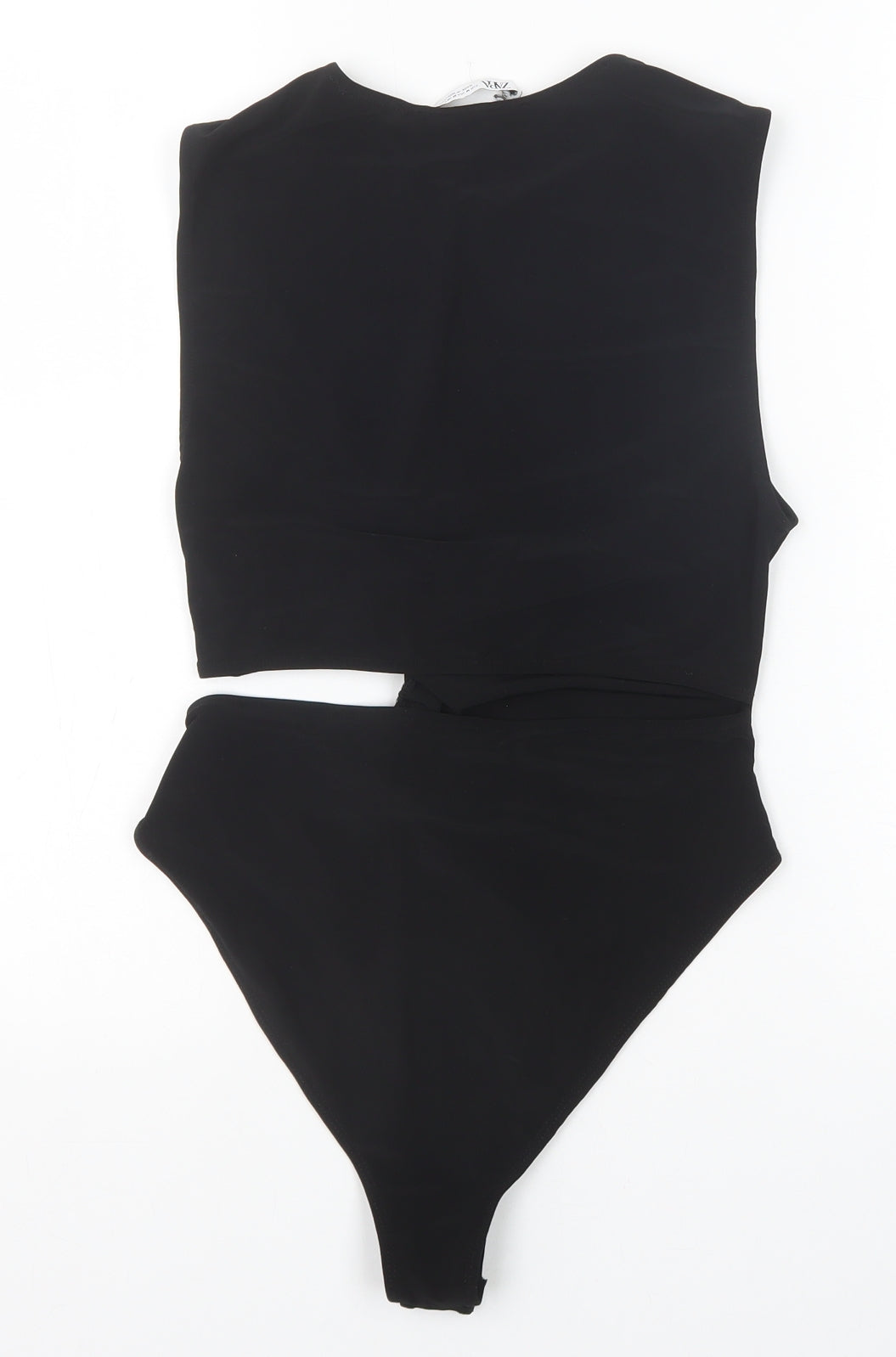 Womens Black Polyester Bodysuit One-Piece Size M Snap - Cut Out