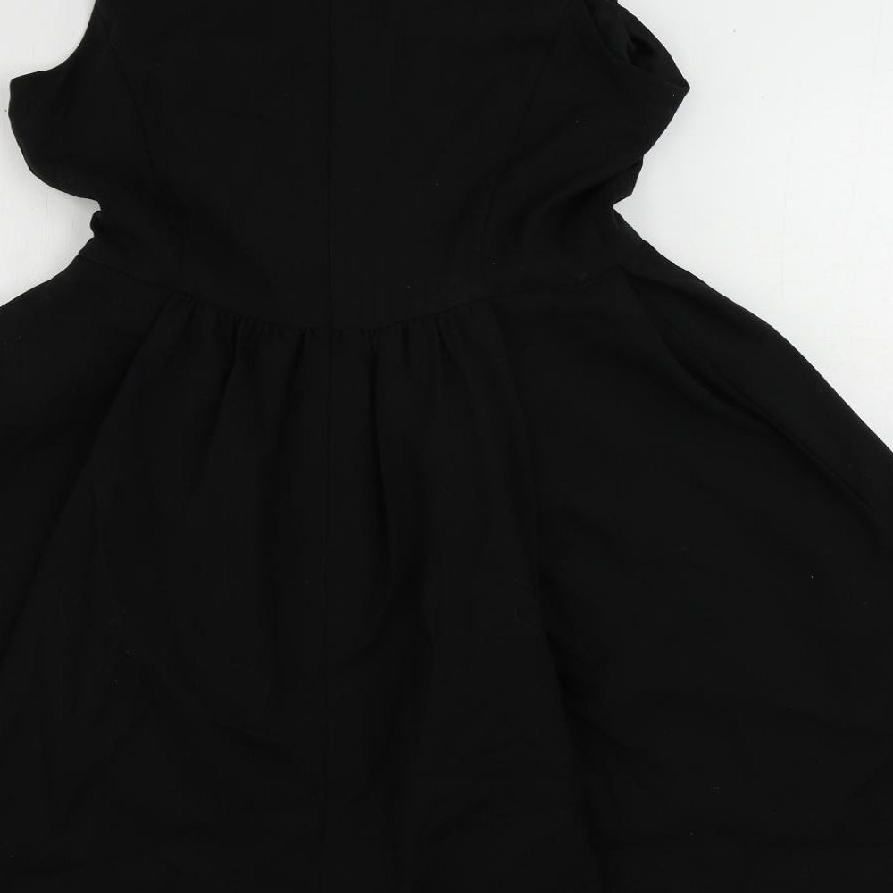 Zara Womens Black Polyester Slip Dress Size M Square Neck Zip