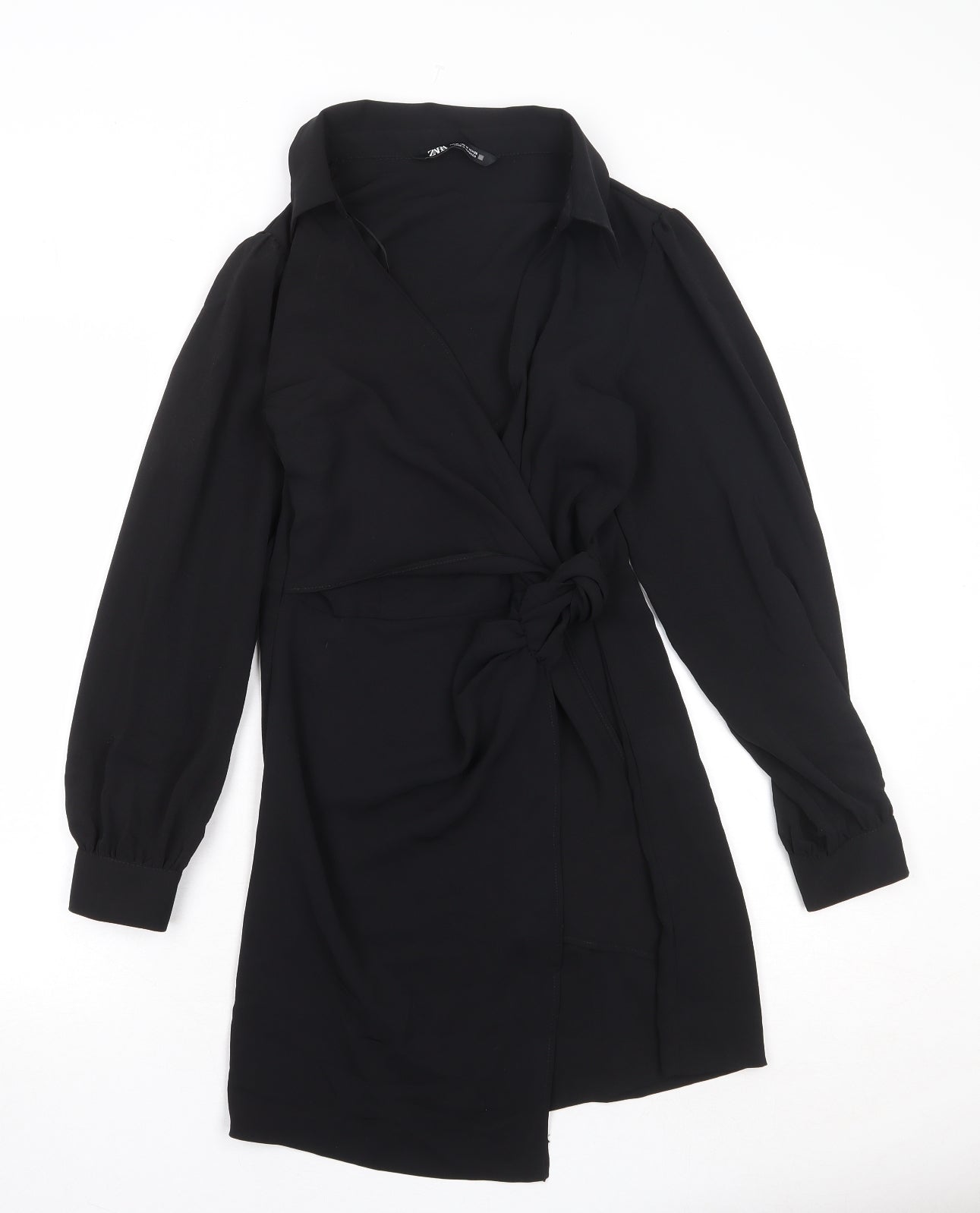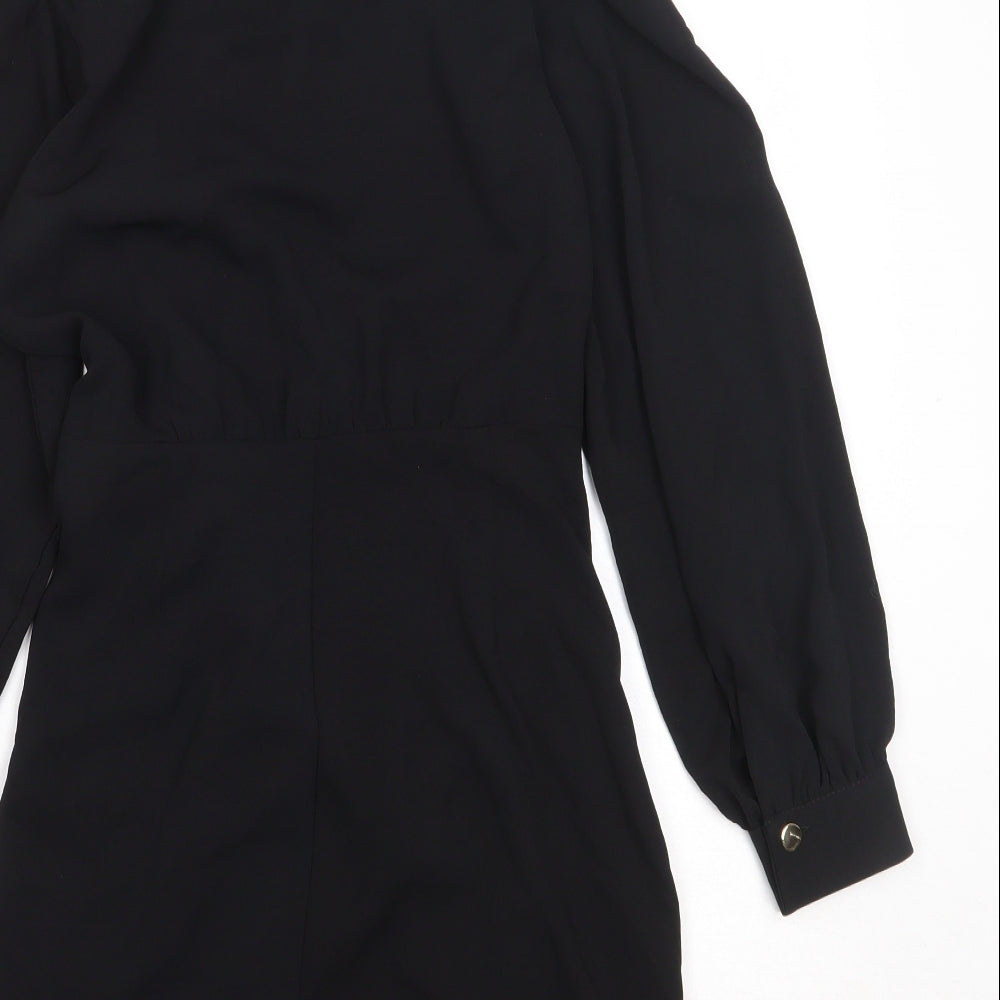 Womens Black Polyester Wrap Dress Size M Collared Zip - Twist Detail