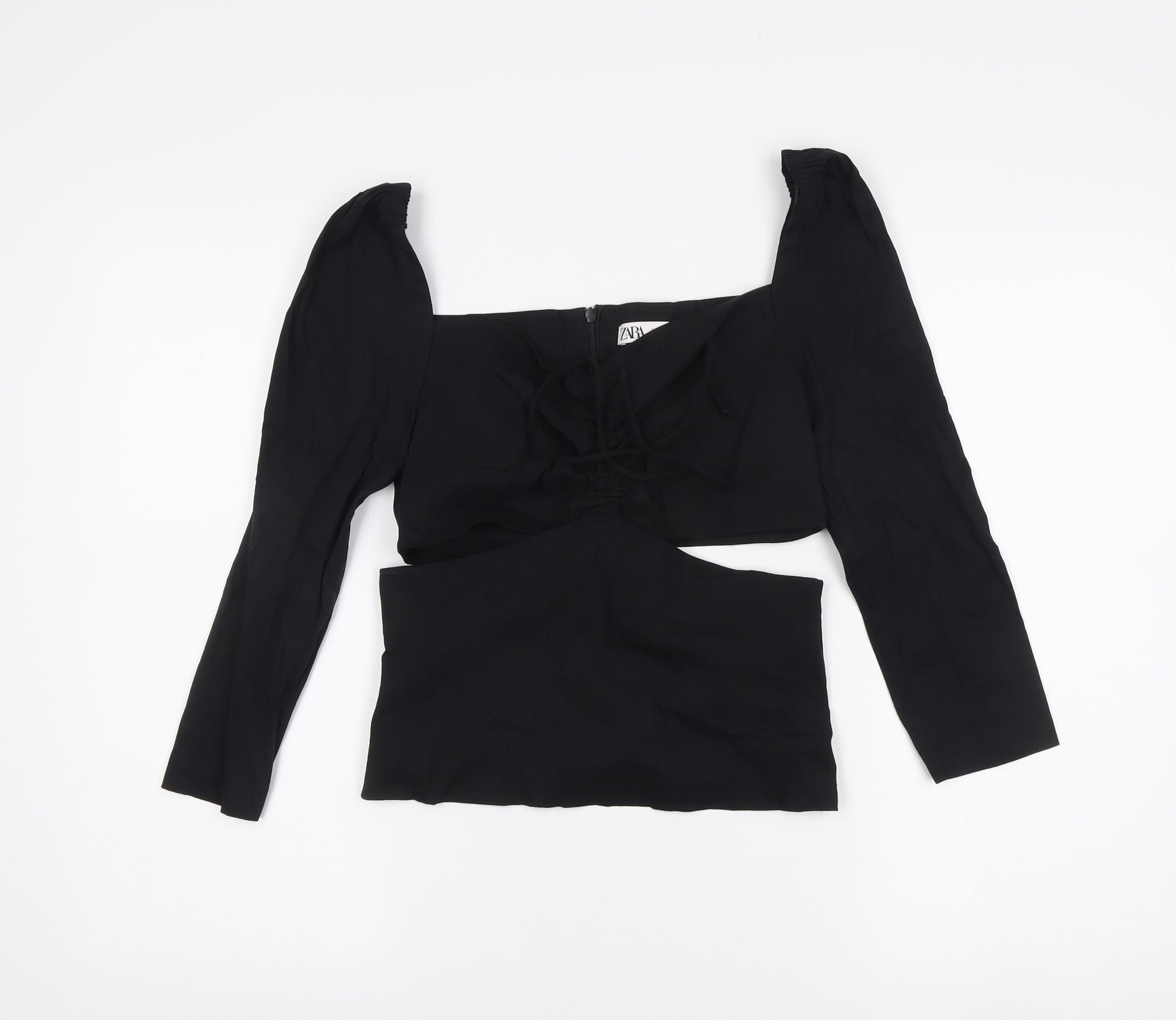 Elevate your wardrobe with this chic Zara long sleeve black blouse. Crafted for sophistication, it features a trendy puff sleeve and a flattering square neckline, perfect for any stylish woman. Designed in a solid black colour, this blouse can seamlessly transition from day to night, offering both versatility and elegance. With a convenient zip closure at the back, it combines ease and style effortlessly. Made for comfort and daily wear, this blouse is ideal for creating a classic look. Whether paired with jeans or a skirt, it's a staple piece that every woman’s wardrobe needs.