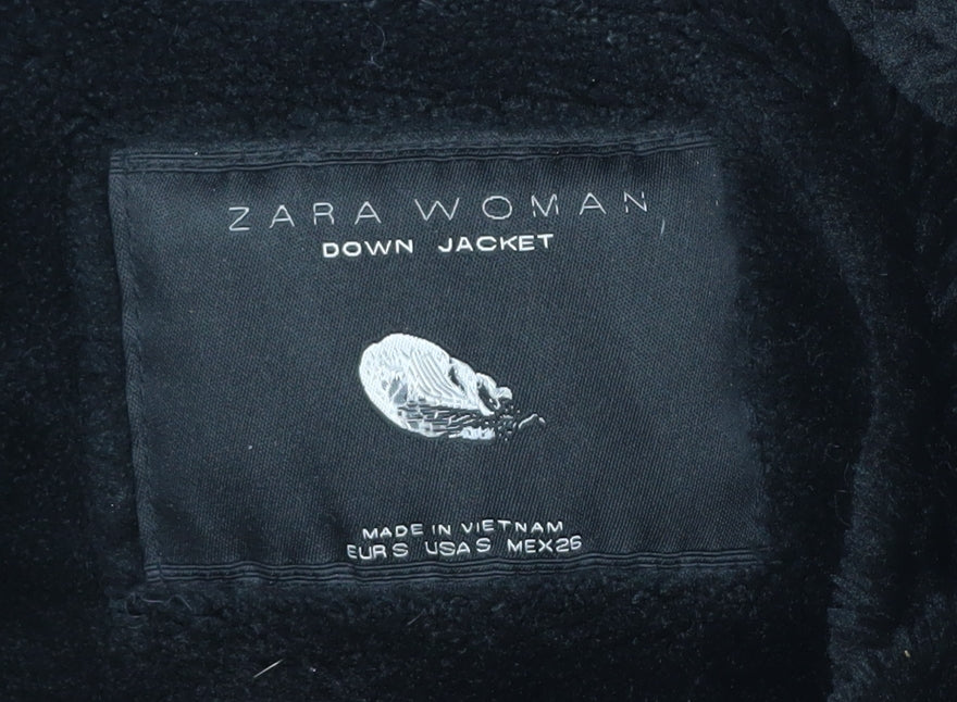 Introducing the Zara Women's Black Puffer Jacket, a stylish and versatile addition to your winter wardrobe. Crafted from a blend of acrylic, modacrylic, and polyester, this jacket offers both comfort and durability. The down insulation ensures warmth during the chilliest of days, making it the perfect companion for the winter season. With a sleek black design, this short-length jacket features a chic fur trim hood, adding a touch of elegance to your look. The jacket includes convenient zipped pockets and a drawstring waist for a customizable fit, ensuring both style and functionality. The full zip and button closure provide ease of wear, while the polyester lining adds an extra layer of comfort. Whether you're heading out for a casual day or braving the cold, this jacket is designed to meet your needs. Embrace the winter in style and comfort with this Zara puffer jacket, perfect for casual occasions and everyday wear.