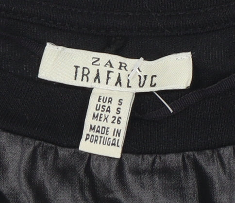 Elevate your casual wardrobe with this chic black quilted T-shirt from Zara. Perfect for women who appreciate style and comfort, this T-shirt brings a touch of elegance with its distinct quilted accents. Crafted from a blend of polyester and viscose, it offers a soft and comfortable fit, ideal for all-day wear. The crew neck design and short sleeves provide a classic and versatile look, making it a perfect staple for everyday outfits. Whether you're dressing down for a relaxed day out or adding a layer to your more formal ensemble, this T-shirt is an excellent choice. Its solid black colour adds a touch of sophistication, ensuring you always look on point. Despite showing some minor signs of wear, this T-shirt remains in excellent condition and is ready to enhance your wardrobe. Available in size S, this piece is designed to fit regular size wearers comfortably. Discover a perfect blend of fashion and comfort with this exquisite Zara T-shirt, ideal for casual occasions or your everyday style needs.