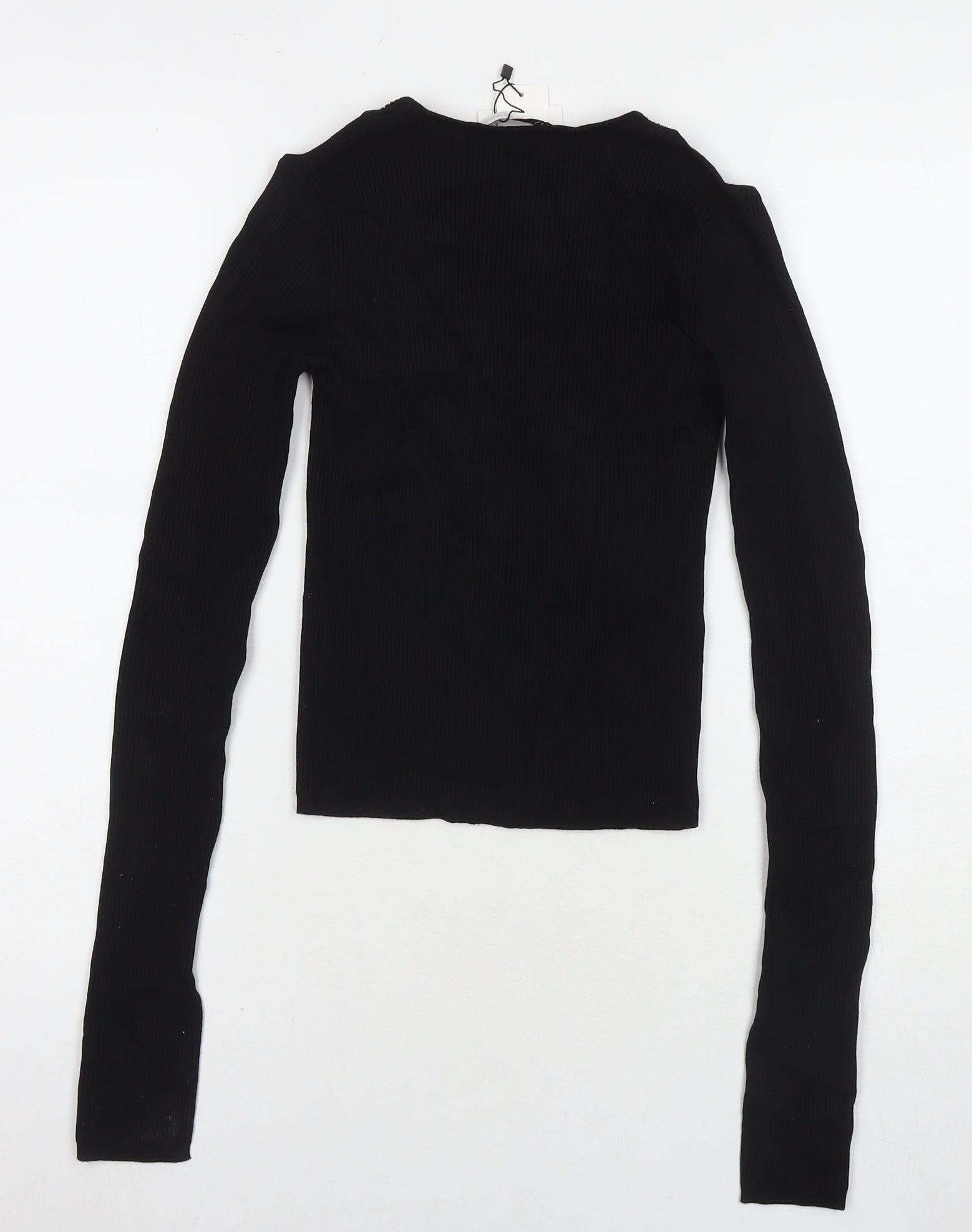 Womens Black Round Neck Viscose Pullover Jumper Size S - Cold Shoulder