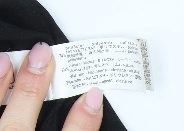 Elevate your style with this chic Zara Women's Black Short Skort, perfect for versatile occasions. Tailored for women, the skort features a minimalist design in classic black, which complements any wardrobe. Crafted meticulously from a blend of 74% polyester, 23% viscose, and 3% elastane, it offers a comfortable fit and a slightly stretchy feel suitable for all-day wear. The short length and mid-rise provide a flattering silhouette that can effortlessly transition from casual outings to semi-formal gatherings. Designed with a convenient zip closure, it ensures easy wearability and a secure fit. The absence of patterns underscores a modern simplicity, allowing you to pair it with a range of tops and accessories. Although pre-loved, this skort remains in excellent condition, showcasing light wear with no visible flaws, making it a savvy addition to your fashion collection. Experience the elegance and practicality of this skort in any season, with its machine washable fabric making care a breeze. Ideal for those seeking an understated yet stylish piece, this Zara skort is priced affordably at £12.00, reflecting its high quality and timeless appeal. Don't miss the opportunity to enhance your ensemble with this versatile piece, whether you're heading to a casual lunch or a night out. A must-have for fashion-forward individuals, this skort is ready to complement your style.