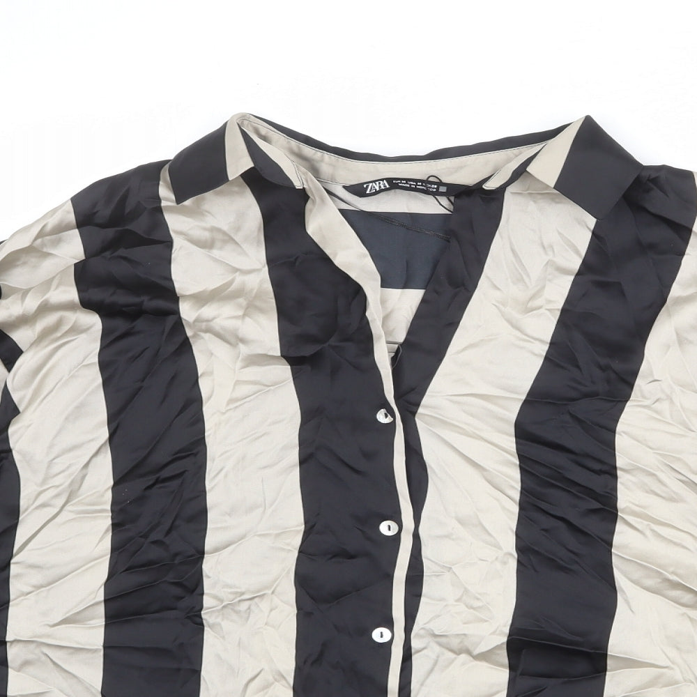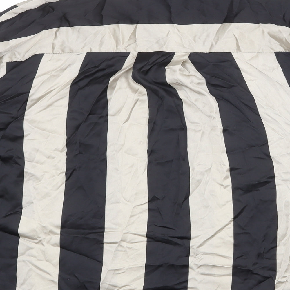 Womens Black Striped Polyester Basic Button-Up Size L Collared