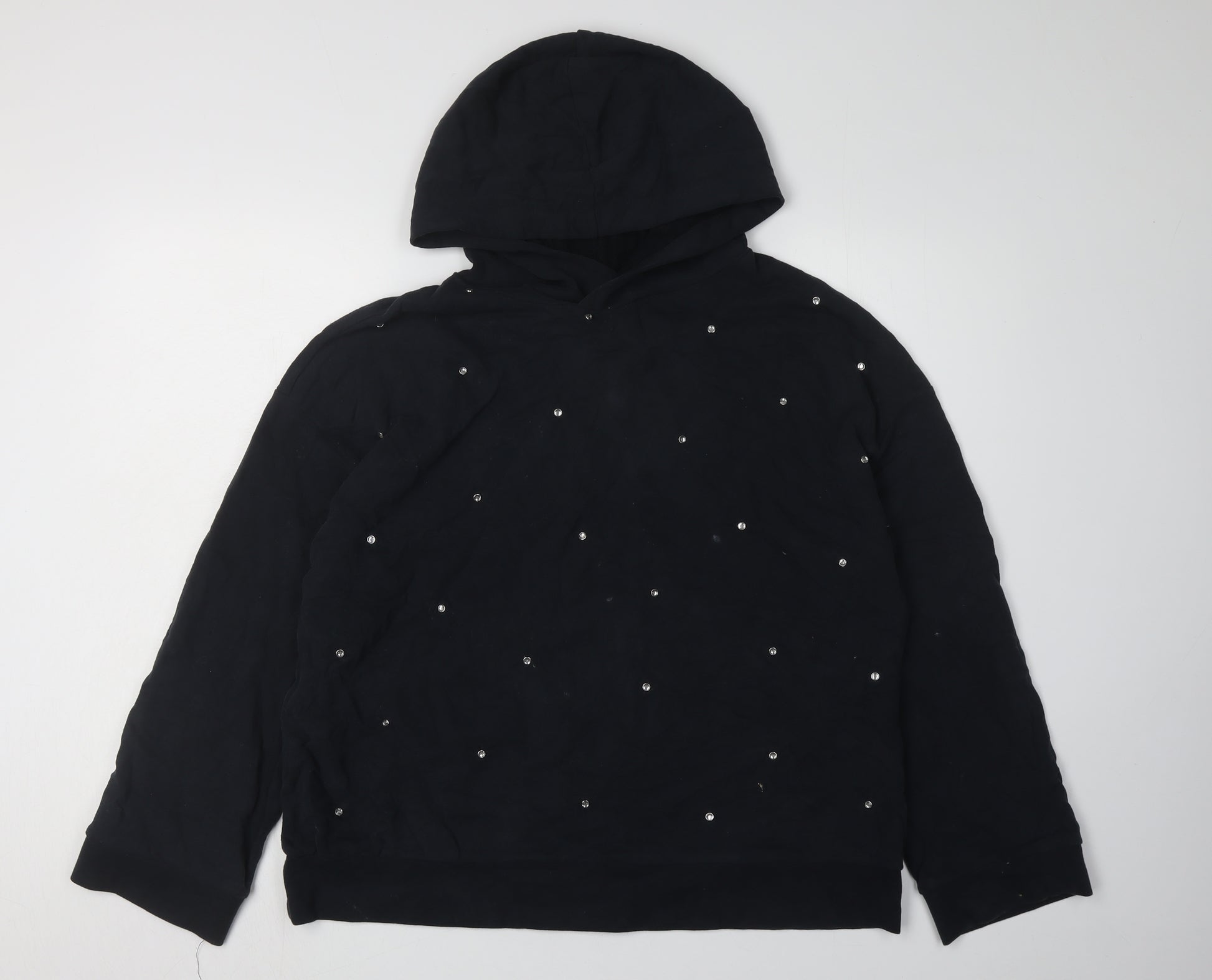 Elevate your hoodie collection with this stylish Zara pullover hoodie. Designed for women, this black hoodie features a unique studded accent that adds a touch of glamour to casual wear. The regular fit and long sleeves make it a versatile piece perfect for both spring and autumn seasons. Its hooded neckline and pullover closure ensure comfort and ease, making it a go-to choice for casual occasions. Crafted with attention to detail, this hoodie promises a blend of style and functionality. Whether you're heading out for a casual day or lounging at home, this hoodie is your ideal companion. Pair it with jeans or joggers for a complete casual ensemble.