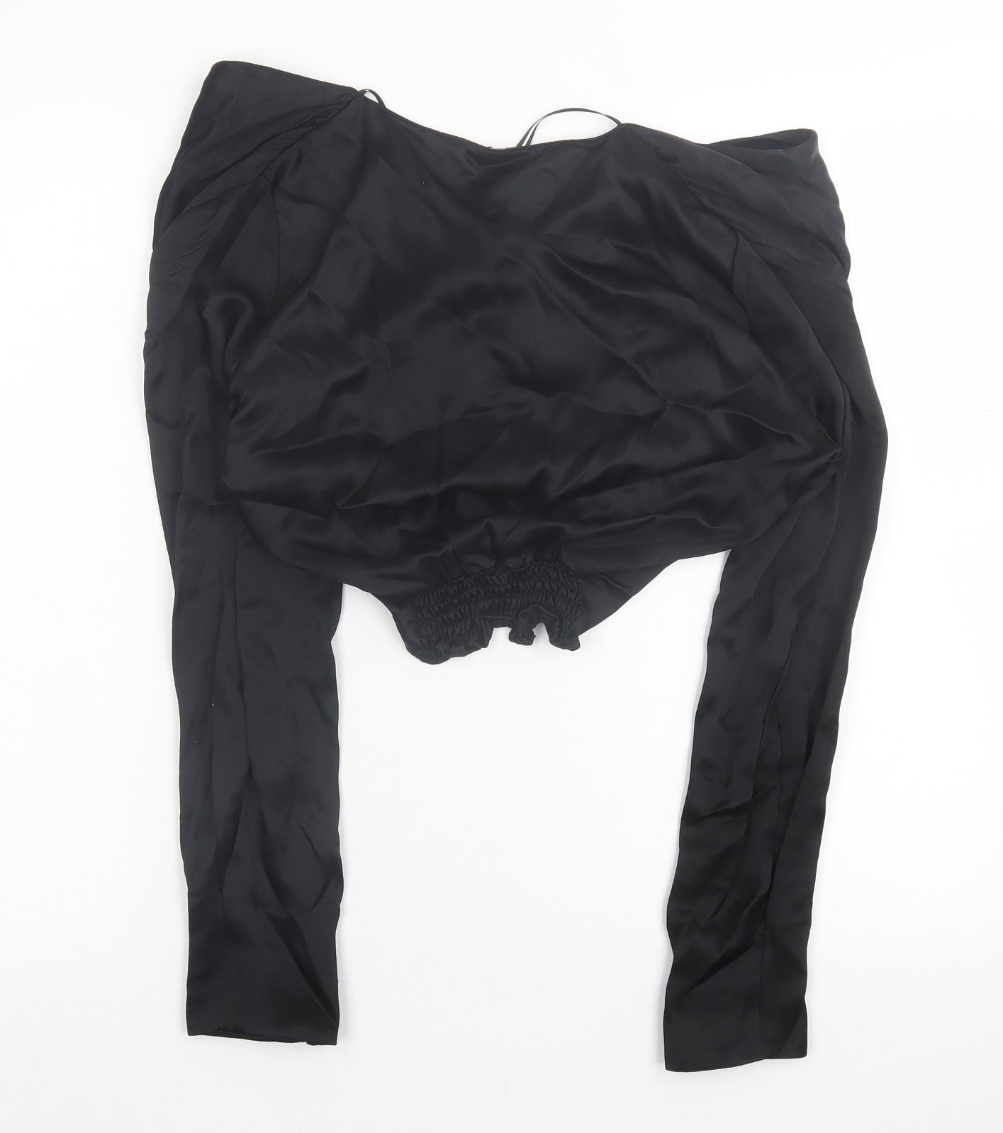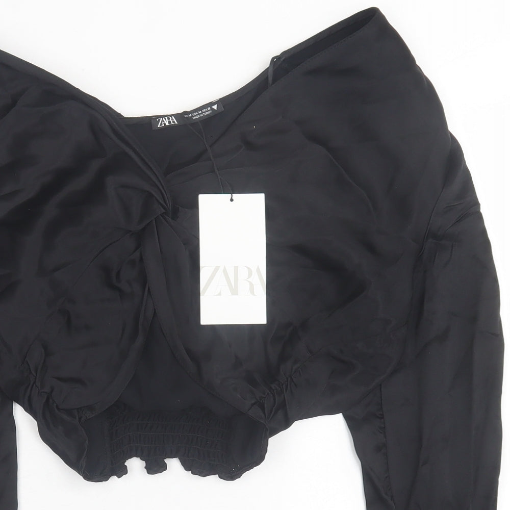 Womens Black Viscose Cropped Blouse Size M V-Neck