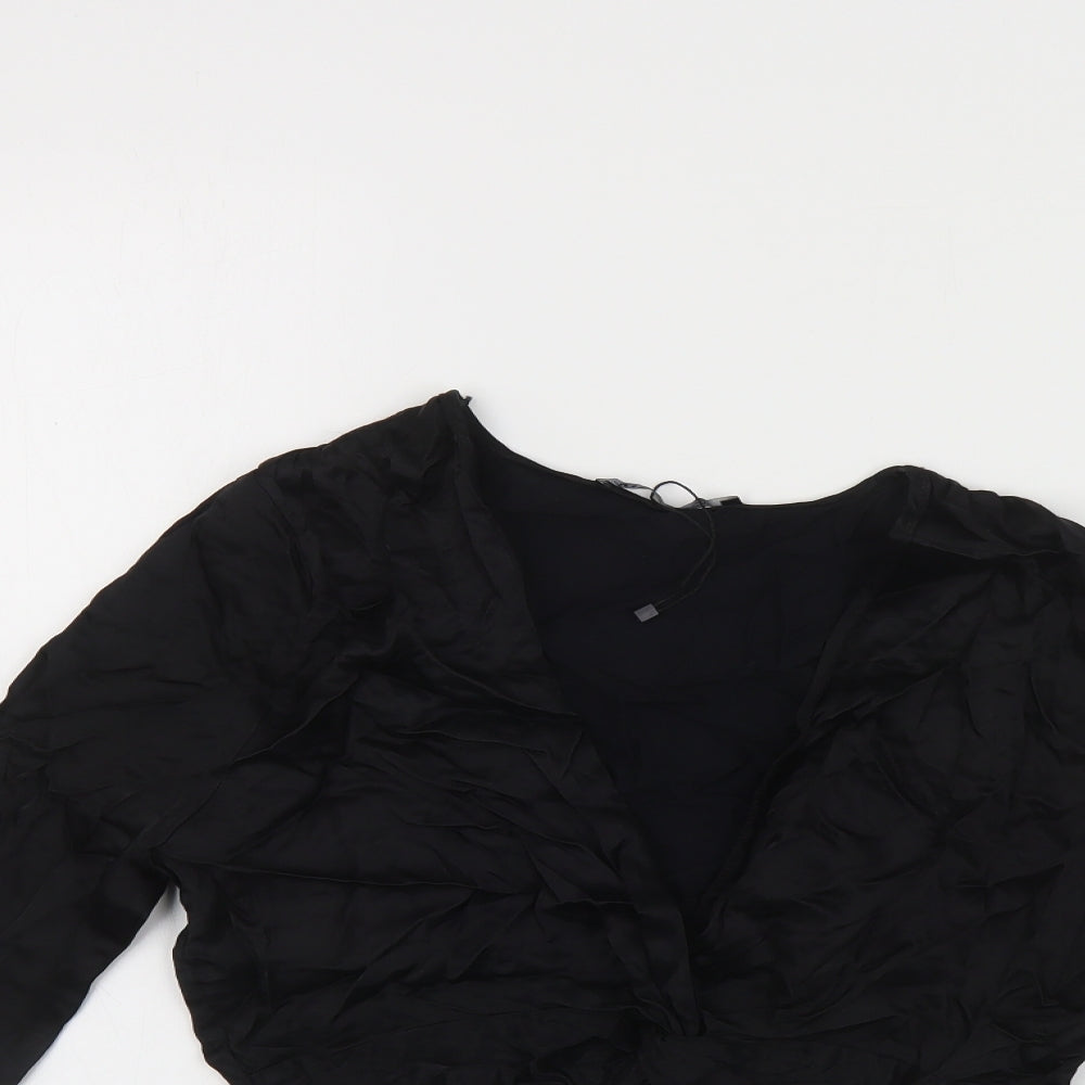 Womens Black Viscose Cropped Blouse Size M V-Neck