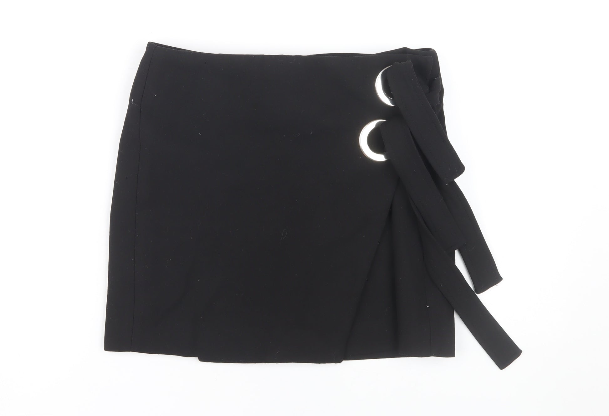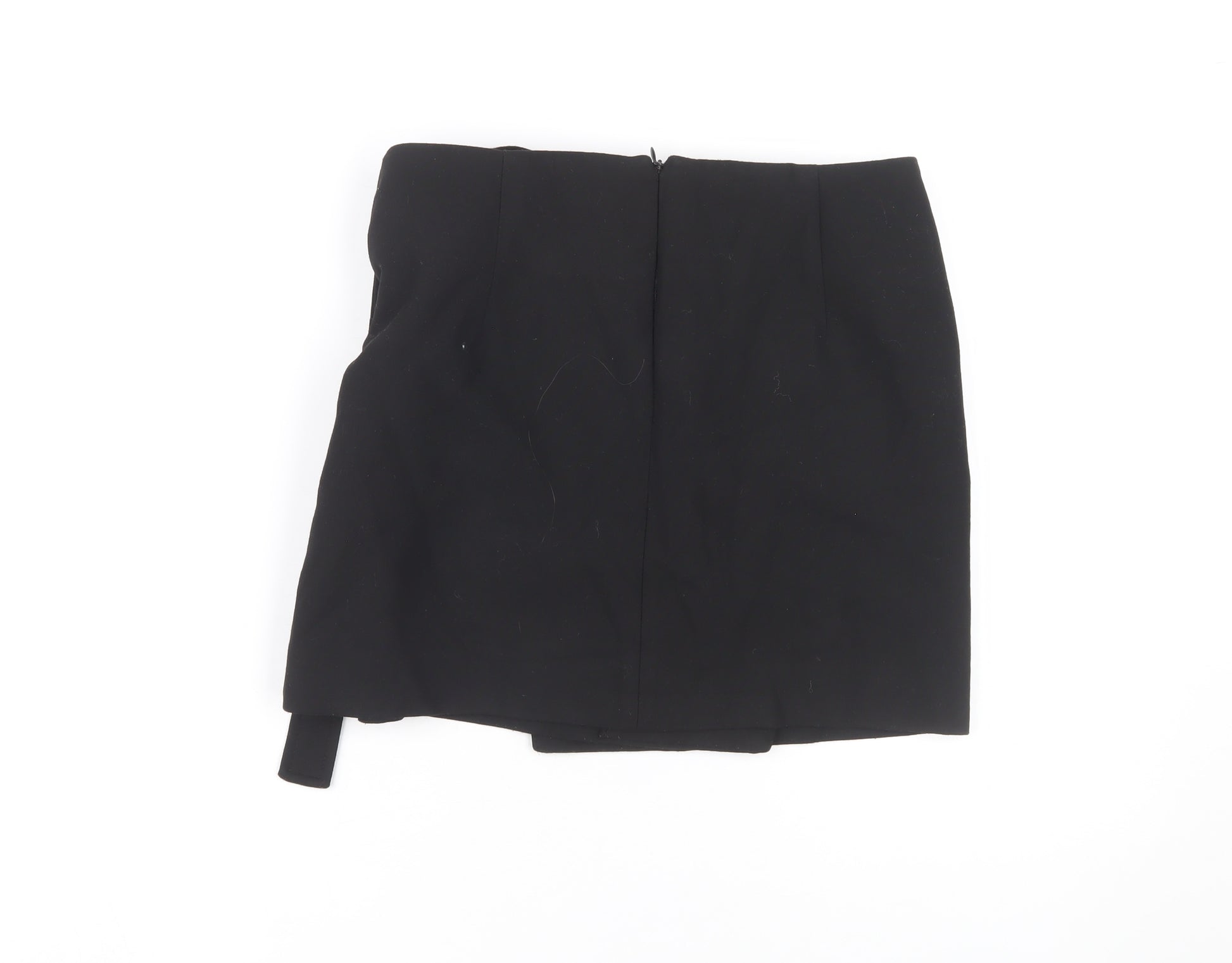 Add a classic touch to your wardrobe with this Zara Women's Black Wrap Skirt. Tailored from a blend of 49% Polyester, 48% Viscose, and 3% Elastane, this skirt exudes both comfort and style. Its high-rise design combined with a chic buckle accent delivers a modern, fashionable look suitable for casual occasions. This skirt is in excellent condition, showcasing only slight wear. Designed with a convenient zip closure, it offers ease of wear while maintaining a seamless appearance. Perfect for all seasons, this short-length wrap skirt pairs effortlessly with a variety of tops, making it a versatile favorite. Whether you're going for a simple outing or a casual meeting, this skirt will undoubtedly enhance your ensemble, offering both comfort and style. A must-have for women who appreciate classic style with a contemporary twist.
