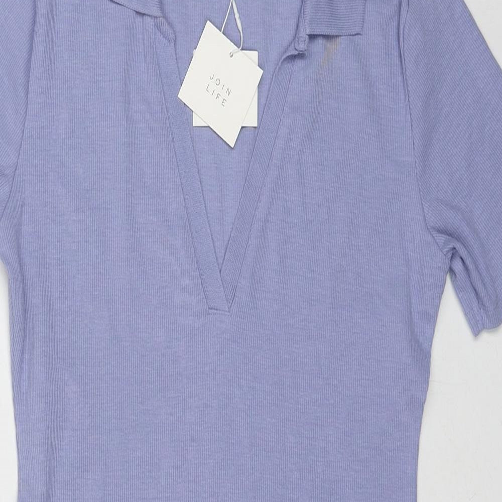 Womens Blue Cotton Bodycon Size L Collared Pullover