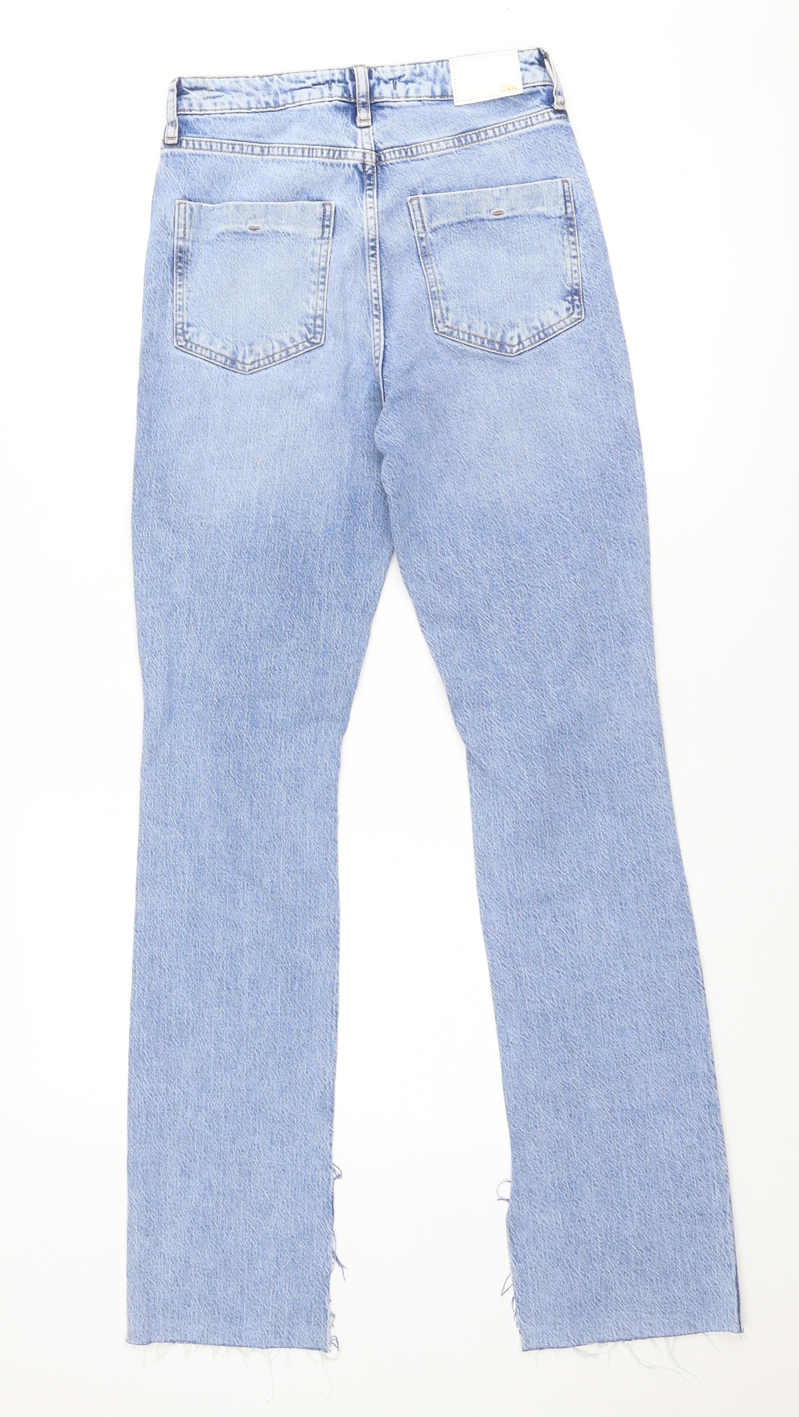Womens Blue Cotton Straight Jeans Size 8 Regular Zip - Side slits