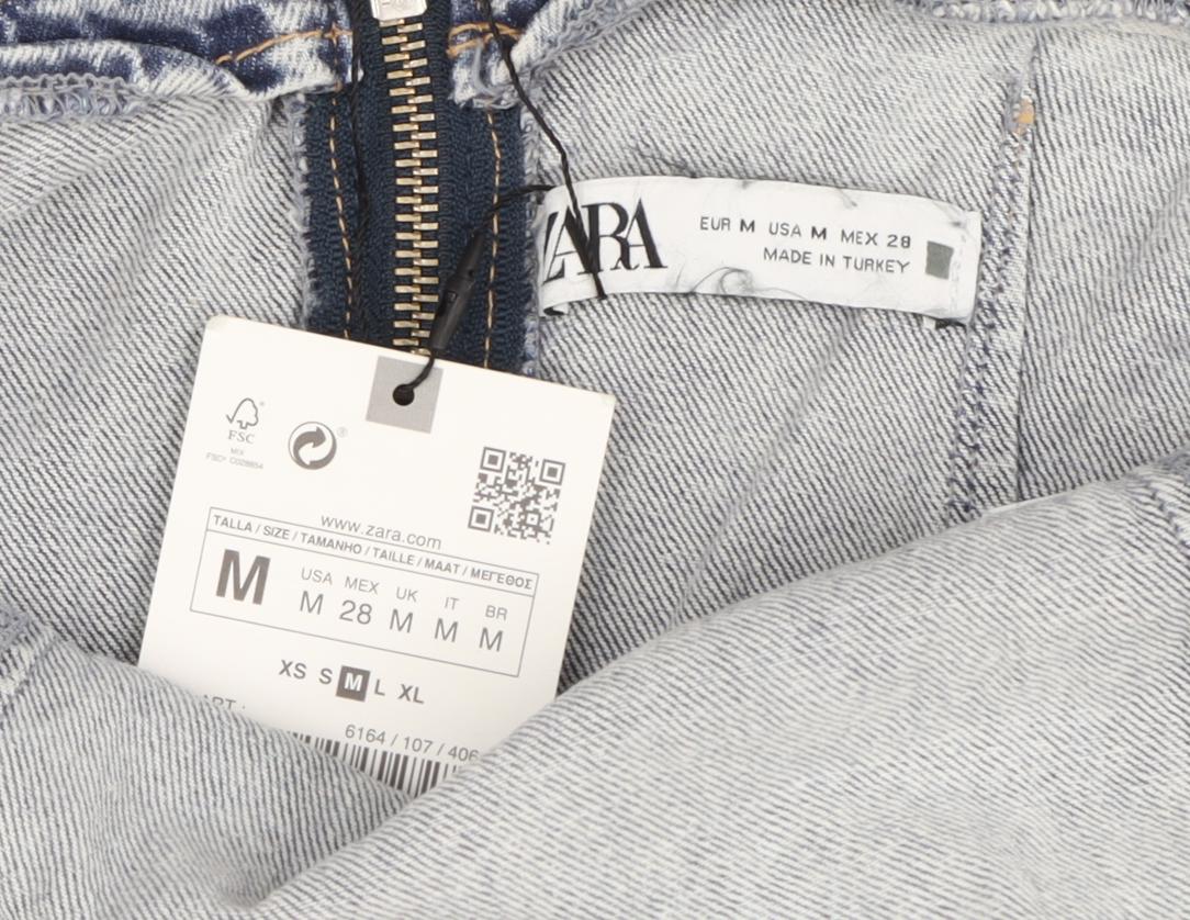 This Zara women's mini dress is a chic choice for casual spring and summer outings. Crafted from a comfortable denim fabric with a blend of 98% cotton and 2% elastane, it offers a form-fitting yet flexible look. The sleeveless, strapless design makes it perfect for warm days, while the classic blue hue and plain pattern provide a timeless appeal. The dress features a practical zip closure for easy wearing. Ideal for casual occasions, its mini length adds a playful touch. Machine washable for effortless garment care, it is brand new with original sales tags. Elevate your summer wardrobe with this must-have piece.