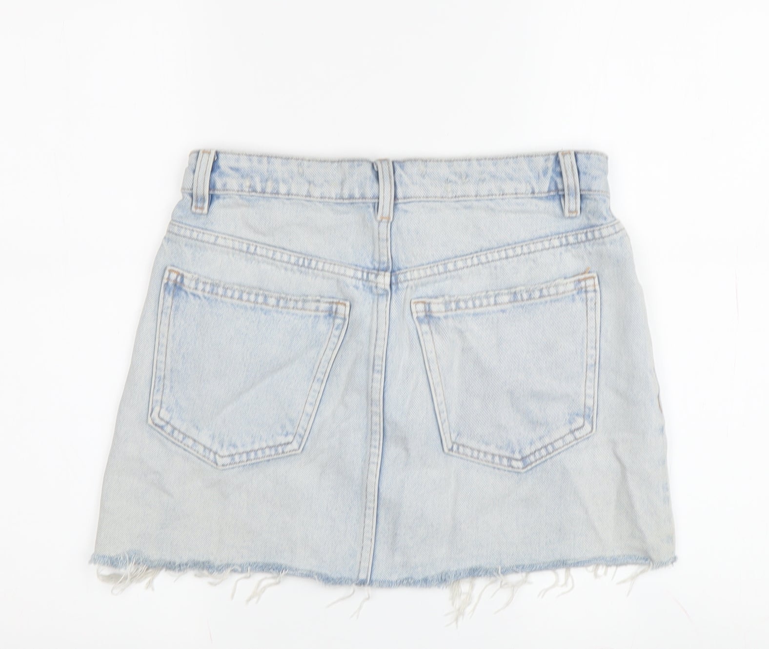 This chic Zara mini skirt is a must-have for your casual wardrobe. Crafted from 100% cotton denim, it promises durability while offering a classic style statement. Its blue hue and fringe accents add a trendy twist to a timeless piece. The skirt features convenient pockets and a button closure with a zip, ensuring both style and functionality. Designed for all seasons, it pairs well with various tops and shoes to suit any casual occasion. Ideal for women seeking a stylish, comfortable skirt, it’s a versatile addition to your collection.