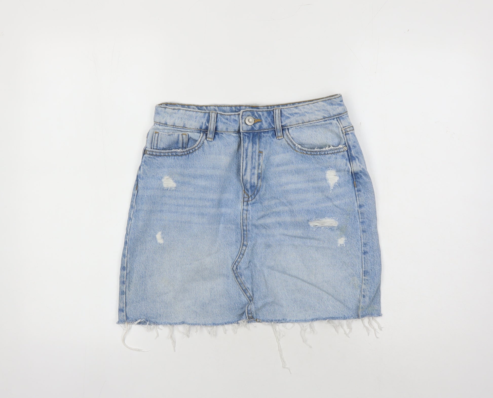 Women's Blue Denim Mini Skirt, Size S, Casual Style
