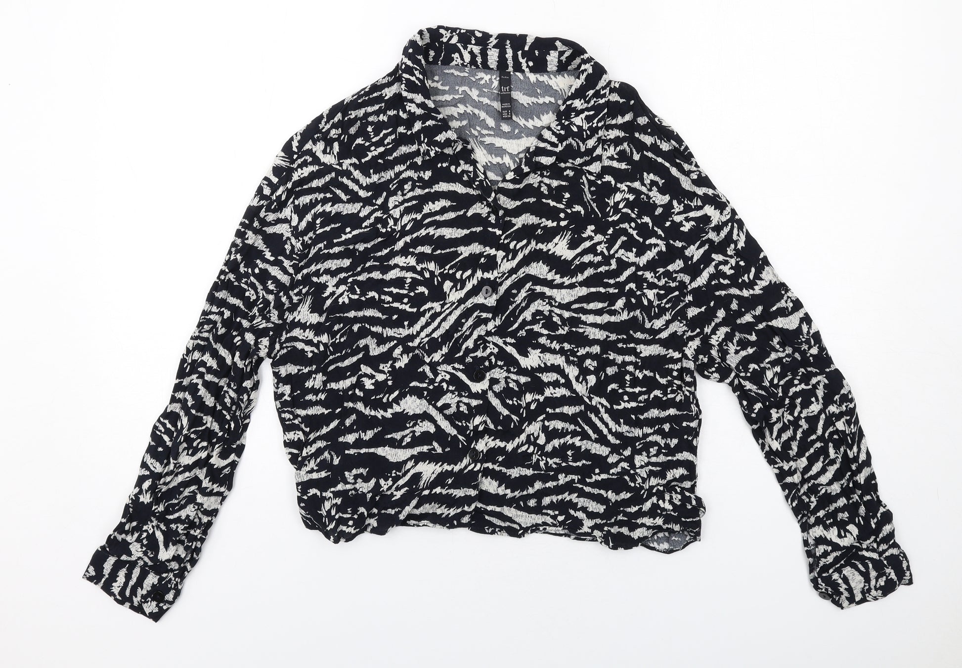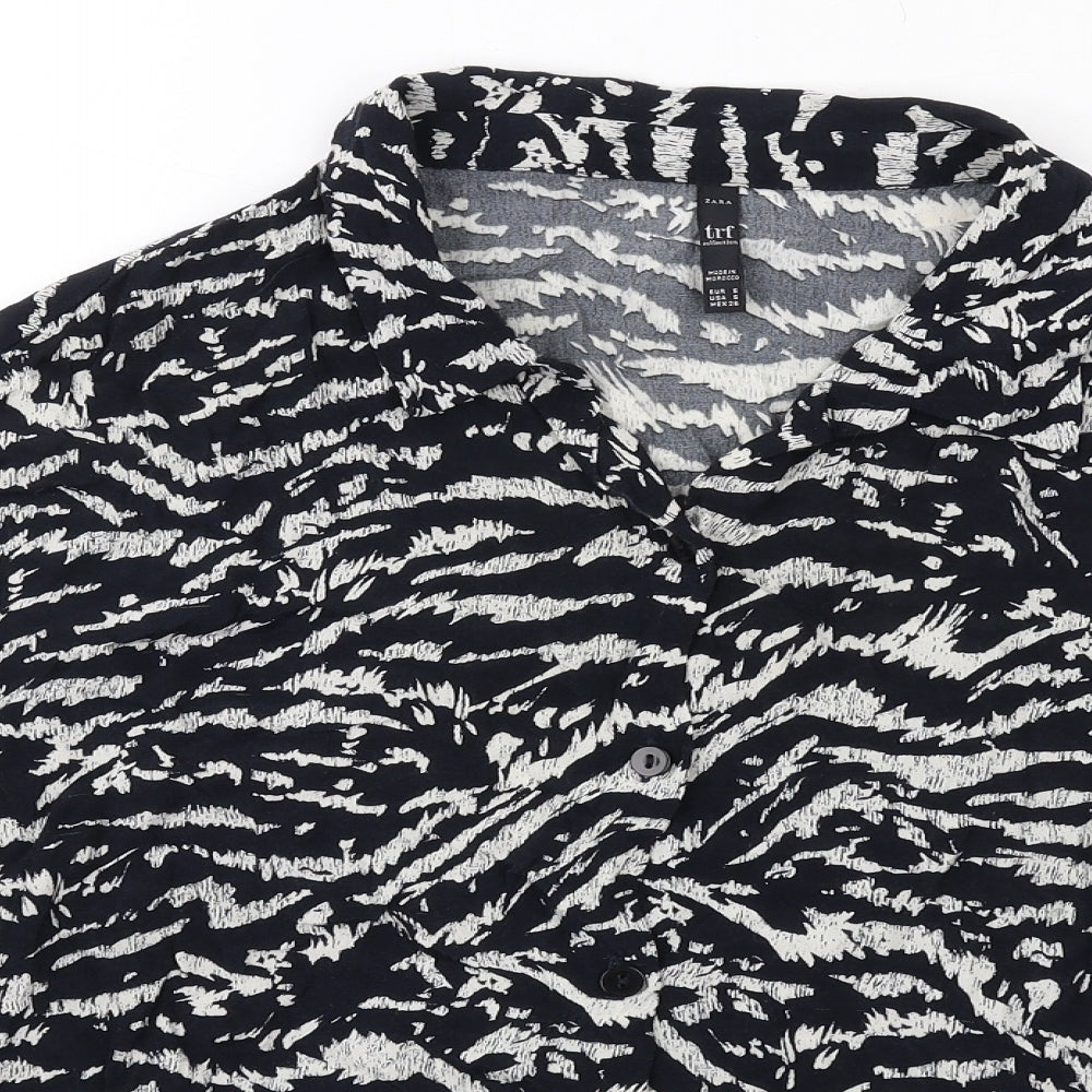 Womens Blue Geometric Viscose Basic Button-Up Size S V-Neck