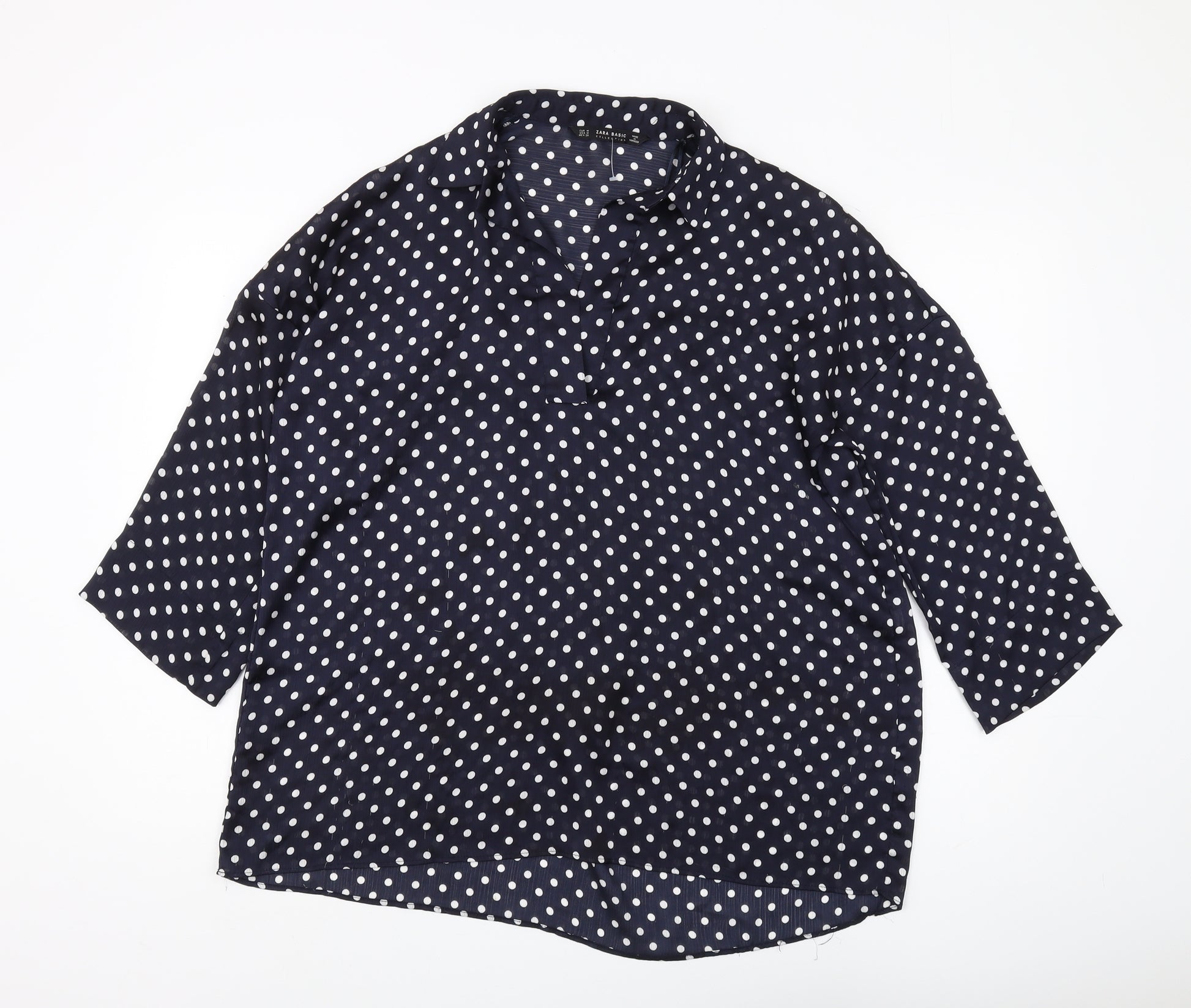 Step out in style with this elegant Zara women's blouse, perfect for a chic casual look. Featuring a classic polka dot pattern in versatile blue, this top is perfect for any occasion. With 3/4 fitted sleeves and a stylish collared neckline, it's designed to blend comfort with fashion effortlessly. Crafted for a regular fit, this blouse is ideal for everyday wear, ensuring you look polished without compromising on comfort. Perfectly suited to layer under a blazer for a smart-casual outfit or worn alone with jeans for a relaxed vibe. Whether you're heading to work, a casual brunch, or a leisurely stroll around town, this blouse is a versatile addition to your wardrobe. The medium size 12 fits comfortably across the body, showcasing Zara's commitment to quality and design. Elevate your everyday style with this must-have piece, designed for women who love to keep it classic yet trendy. Great as a thoughtful gift for fashion enthusiasts or to simply indulge yourself. Add this timeless piece to your collection today!