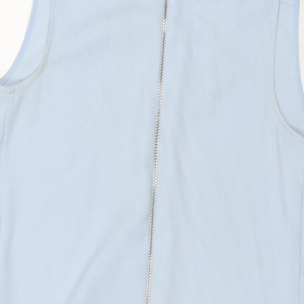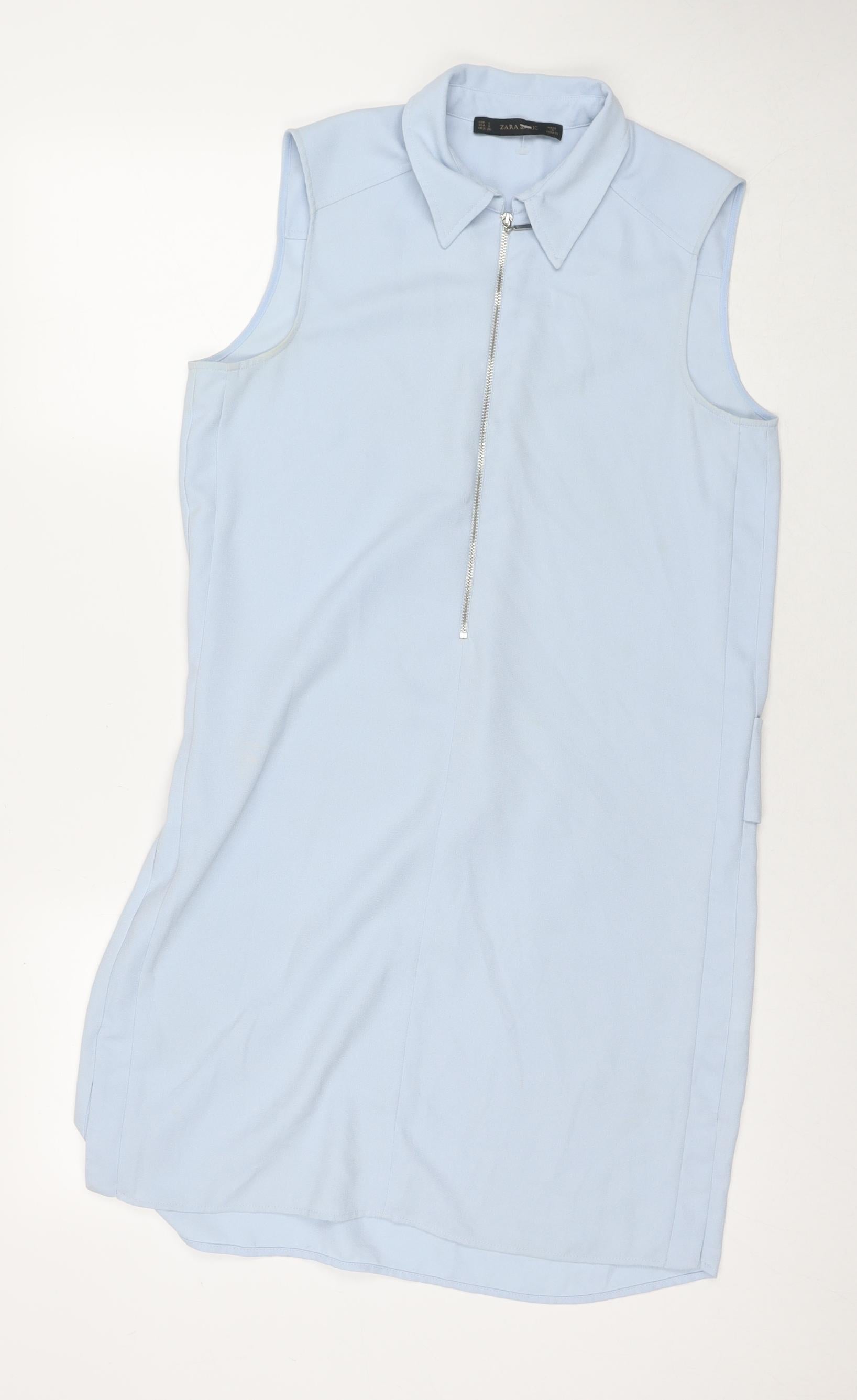 Womens Blue Polyester A-Line Size S Collared Zip