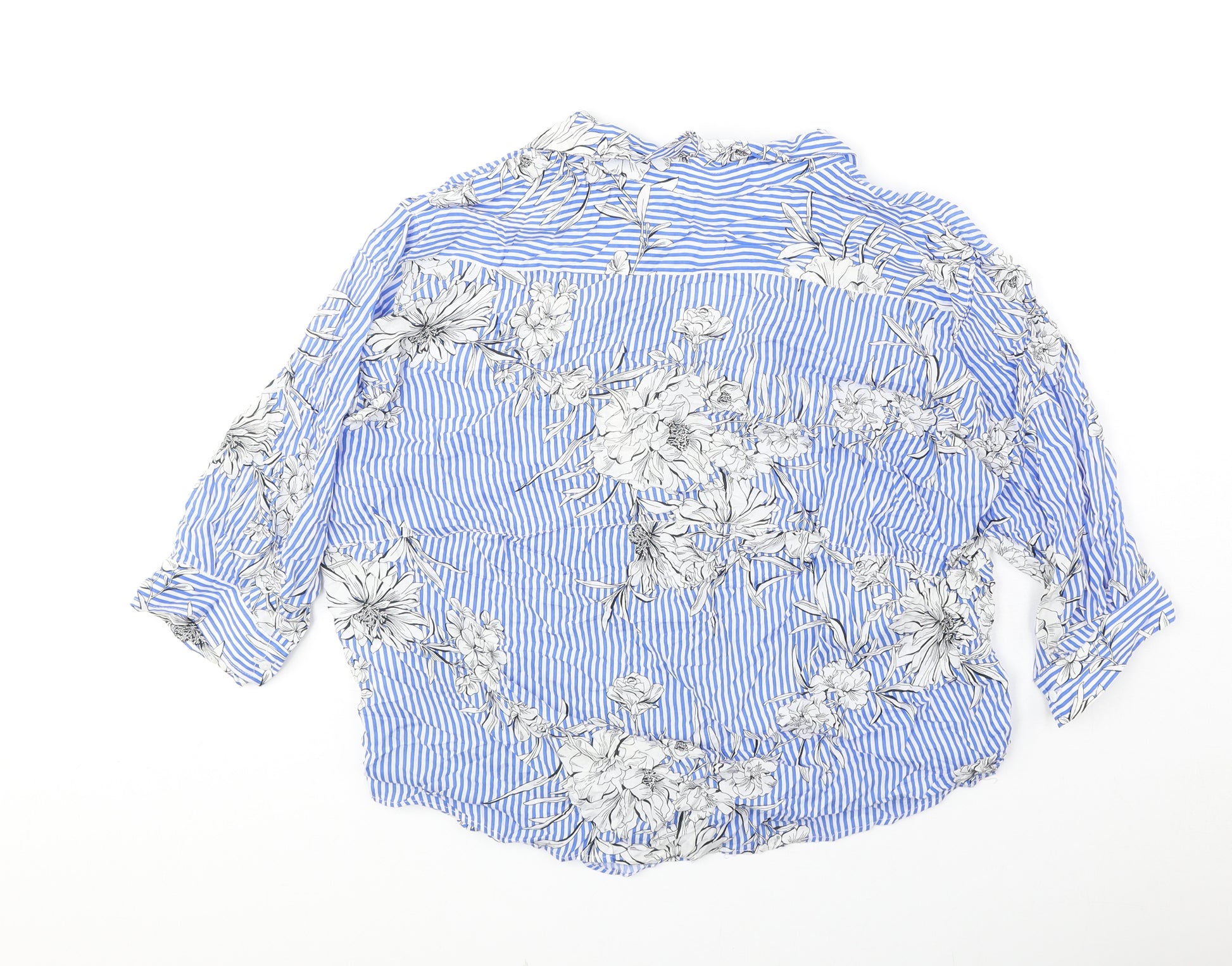 Womens Blue Striped Polyester Basic Blouse Size M Collared - Floral