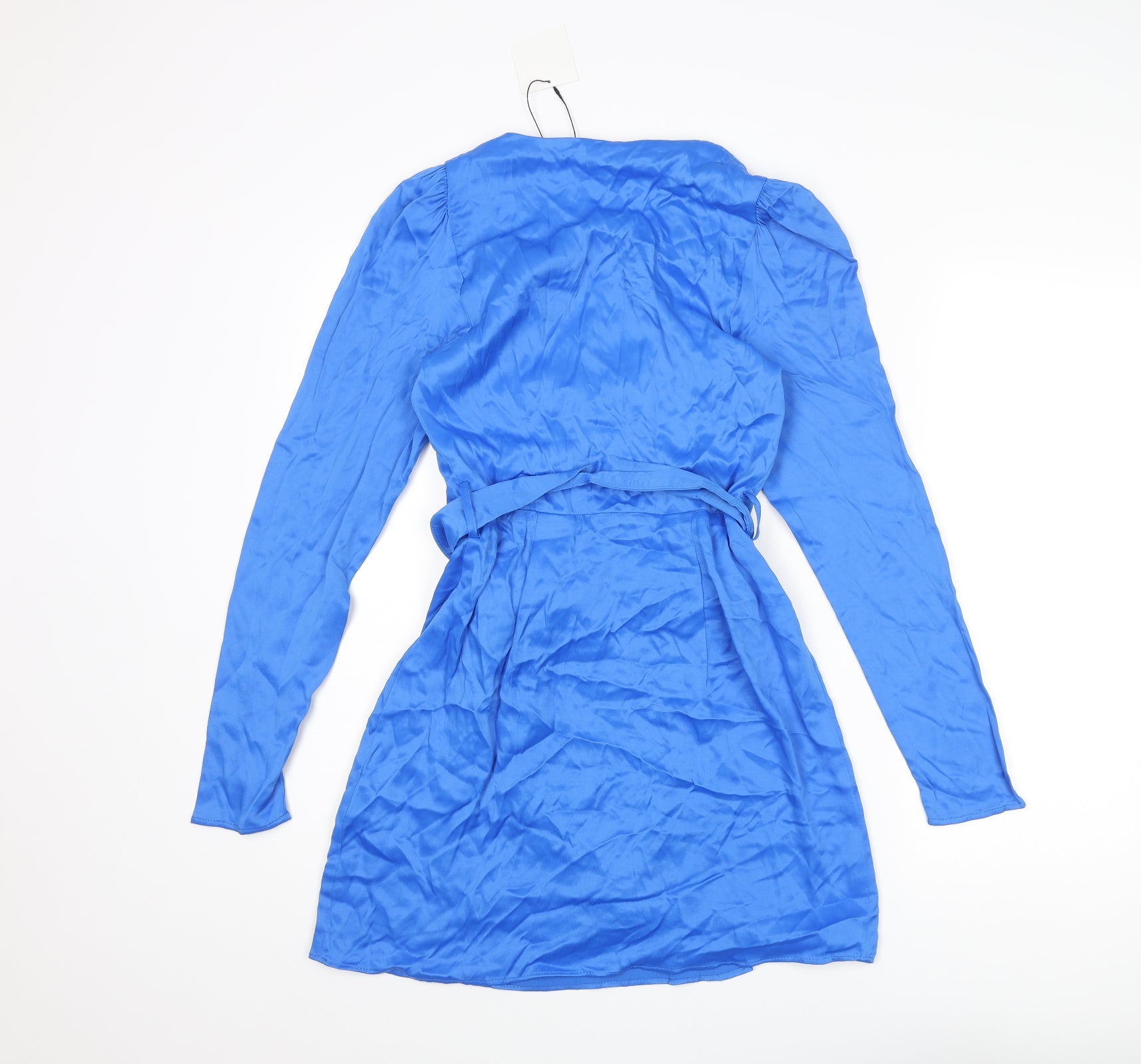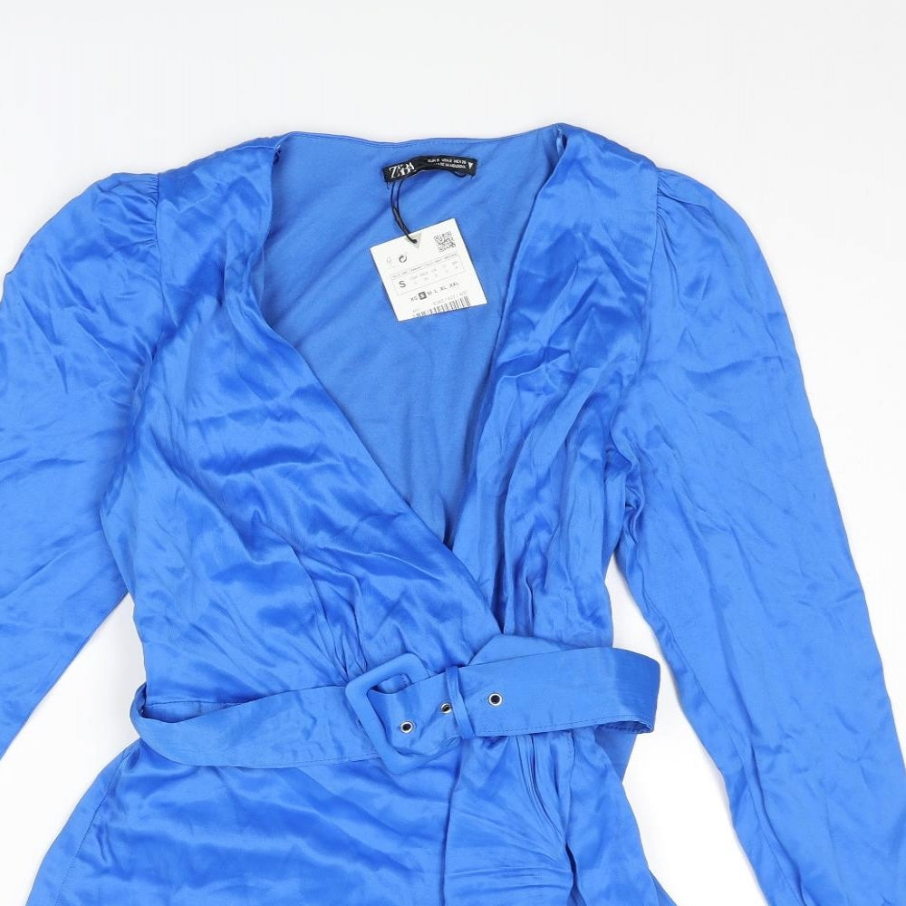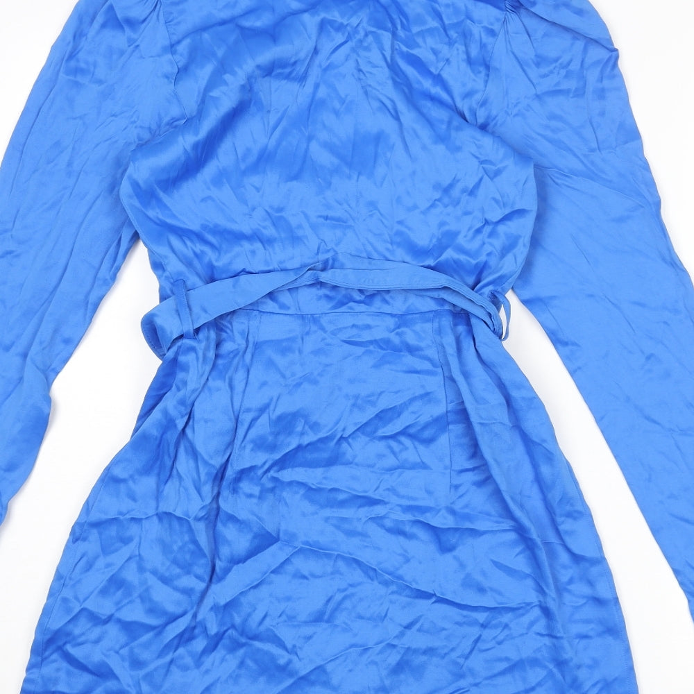 Womens Blue Viscose Wrap Dress Size S V-Neck Pullover - Belted