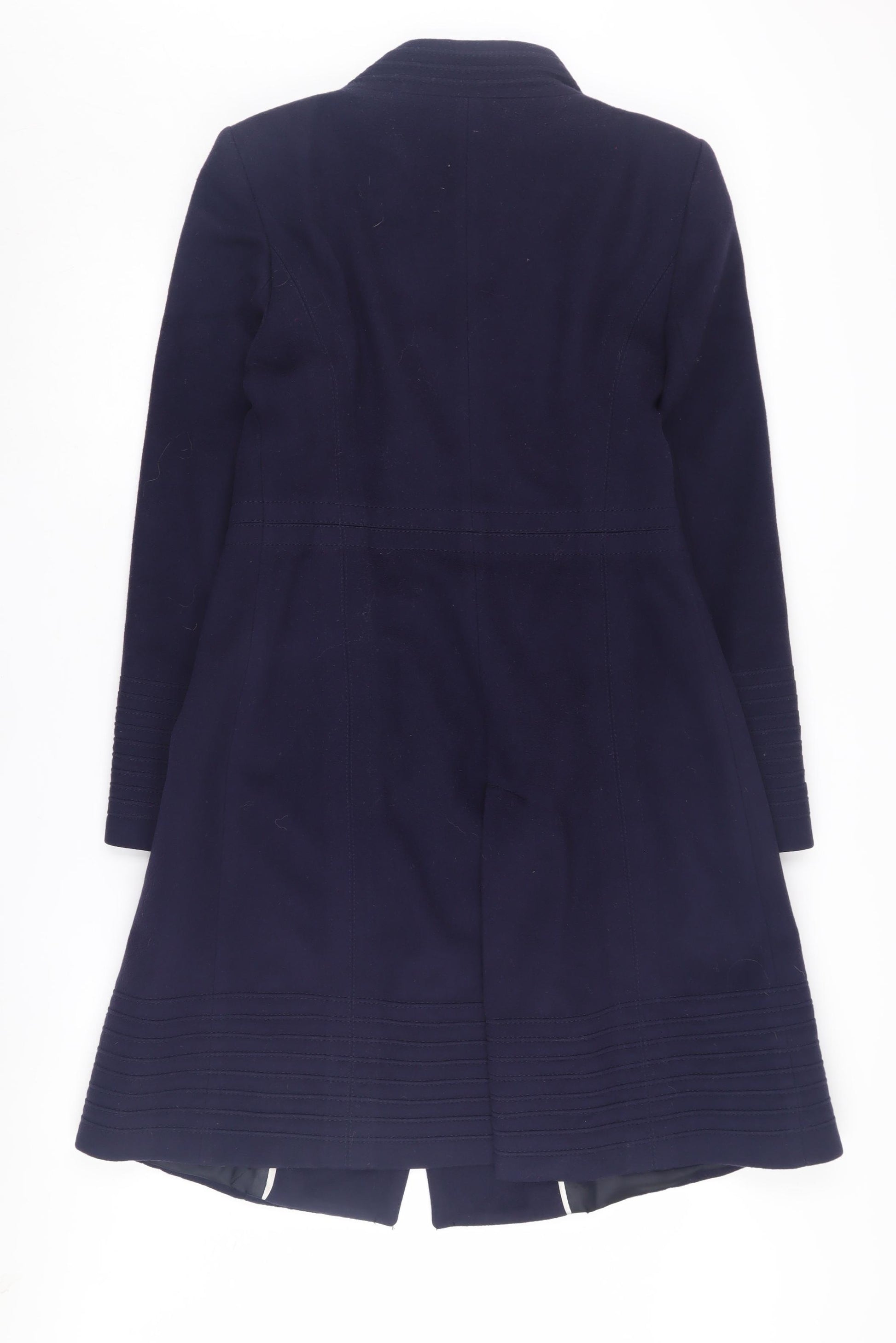 Embrace elegance with this Zara Women's Blue Wool Pea Coat, perfect for both casual and formal occasions. Crafted from high-quality wool, this coat promises warmth and comfort during the cooler months of autumn and winter. Its classic button accents add a touch of sophistication, making it a versatile addition to your wardrobe. Designed in a regular fit, this long pea coat flatters all body types. Its deep blue hue is chic and contemporaneous, ideal for injecting color into your outerwear collection. The coat features a fully lined interior and strategically placed buttons, providing durability and style. A timeless addition to any wardrobe, this coat is dry clean only and promises years of wear if maintained properly. Although the coat is in very good condition, minor signs of wear are slightly visible, adding character without compromising its charm. For the fashion-forward woman who values both style and practicality, this Zara coat is the ideal choice. Make this coat your go-to option for a statement piece in any setting.