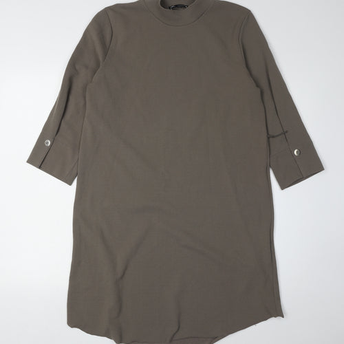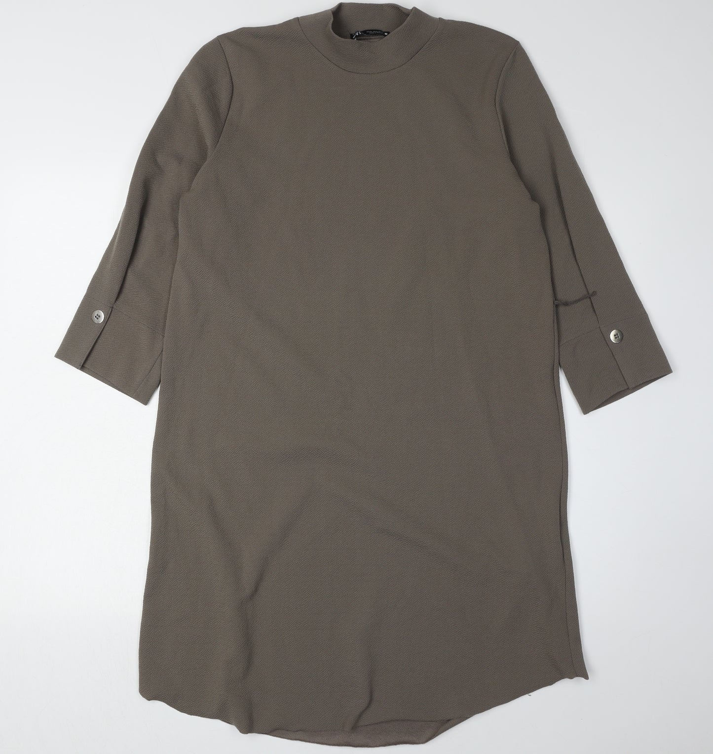 Elevate your wardrobe with this chic Zara Women's Brown 3/4 Sleeve Mock Neck Dress. Designed for elegance and comfort, this dress showcases a sleek mock neck that adds a modern touch to its timeless silhouette. The subtle brown hue provides versatility, making it easy to style for various occasions, whether it's a casual outing or a semi-formal event. Crafted with a soft polyester and elastane blend, it offers slight stretch for a flattering fit. The dress is detailed with 3/4 sleeves featuring button accents, adding a refined finish. Its simple yet sophisticated design is perfect for the fashion-forward woman who values both style and practicality. Enhance your collection with this versatile piece that guarantees a stylish look with minimal effort.