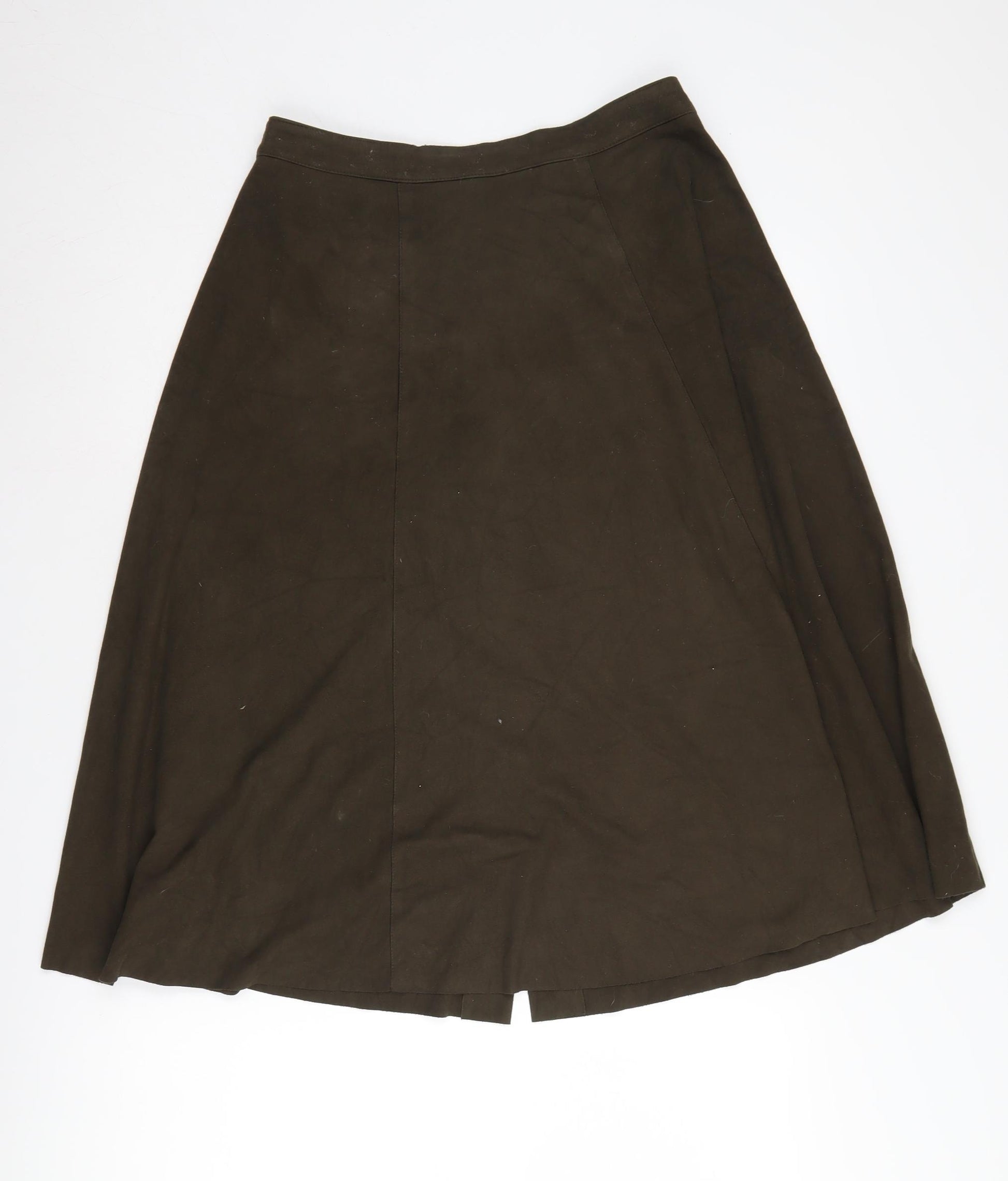 Step out in style with this versatile Zara Women’s A-Line skirt, perfect for any casual setting. Made from a comfortable blend of polyester and elastane, this skirt offers both durability and flexibility. Its rich brown color adds sophistication to your outfit, complementing a variety of tops and accessories. The button accents along the front not only enhance its aesthetic appeal but also ensure a snug wear. Ideal for all seasons, this skirt maintains a modern appeal while offering classic comfort. Despite being pre-loved, it remains in excellent condition with only slight wear visible. The medium size makes it suitable for regular-sized women, and its design is intentionally simple yet elegant, allowing for numerous styling possibilities. Whether paired with a crisp blouse for a day at work or a casual top for a weekend outing, this skirt promises to be a wardrobe staple. Purchase this chic and practical skirt today, and elevate your everyday wardrobe with Zara’s timeless fashion.