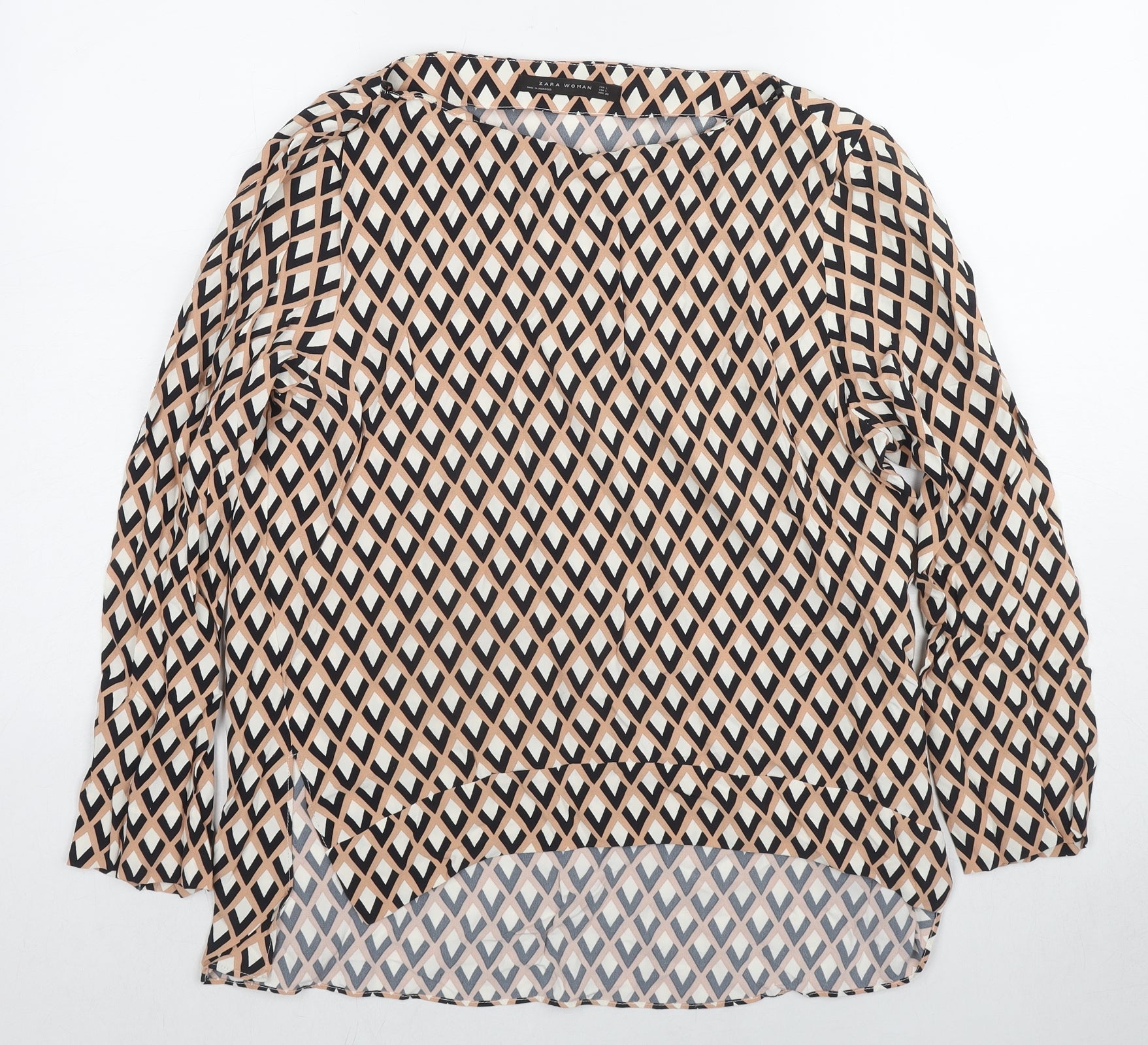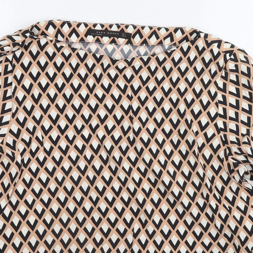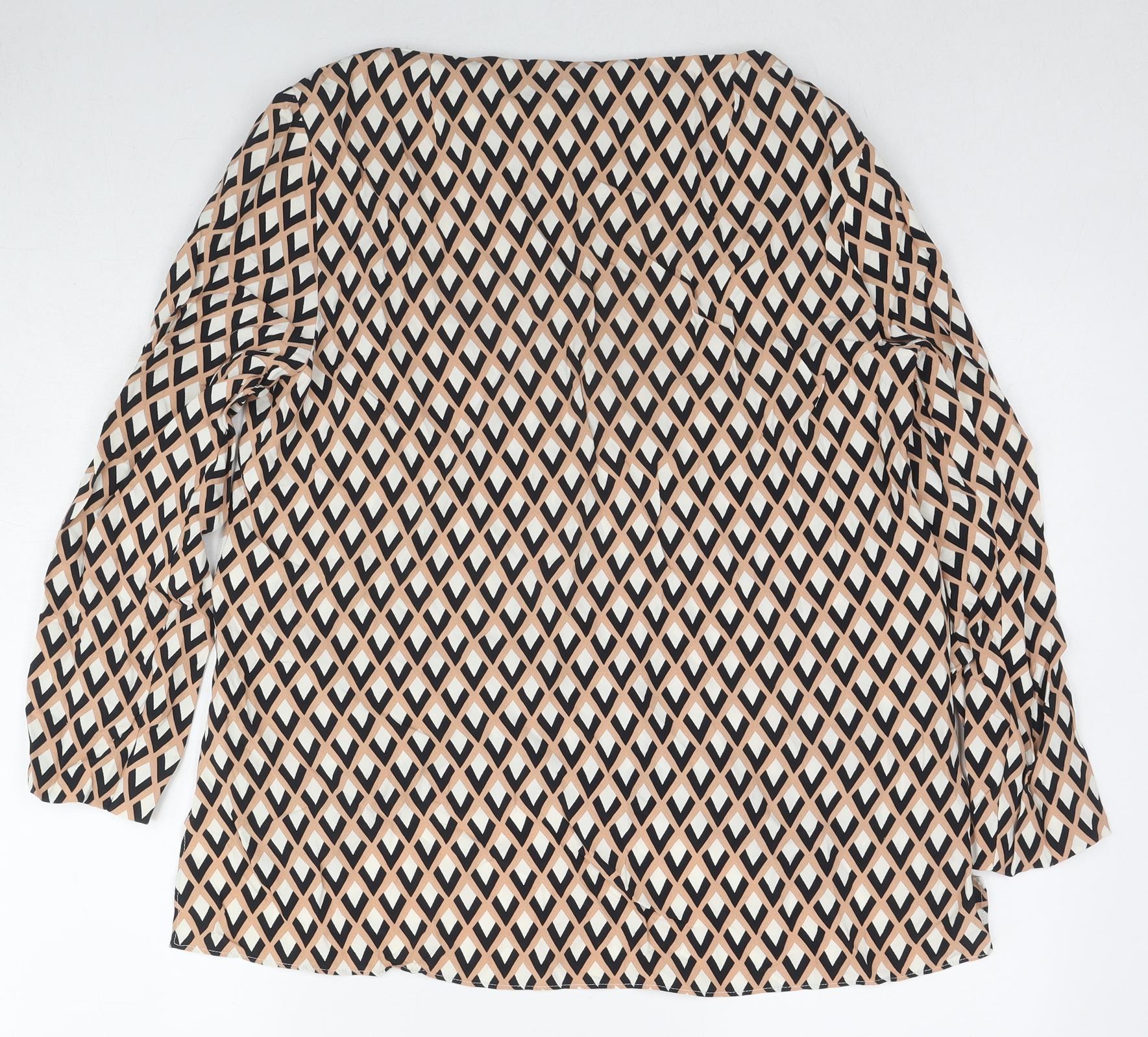 Womens Brown Geometric Polyester Basic Blouse Size L Round Neck